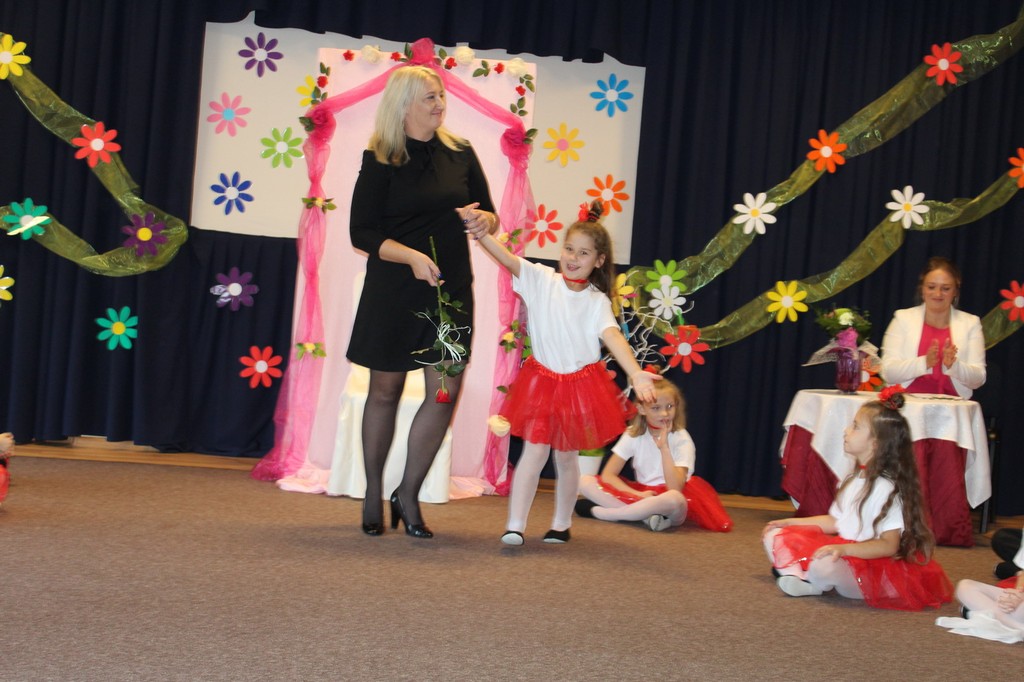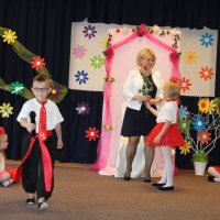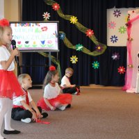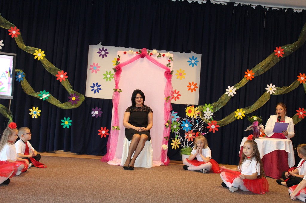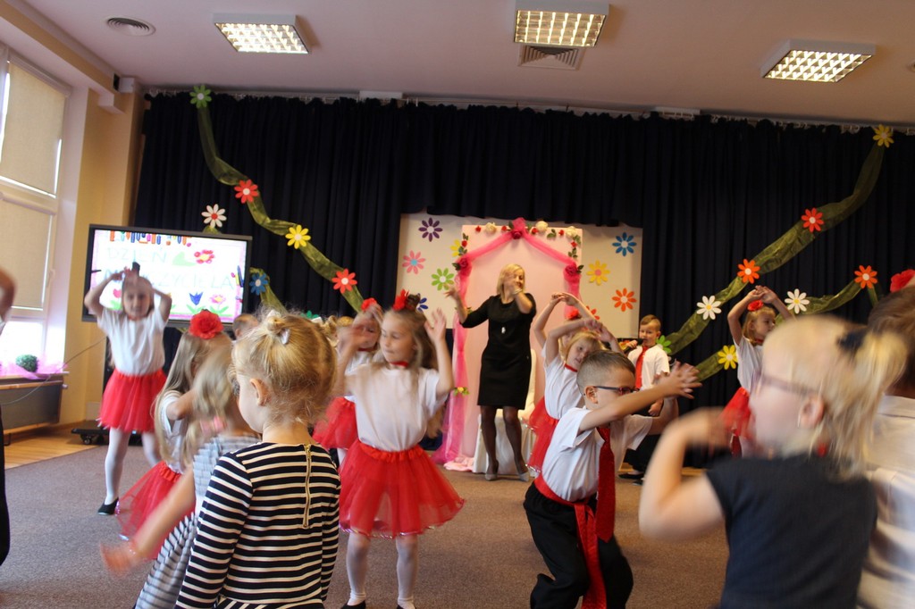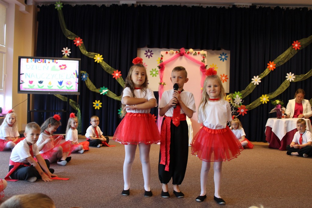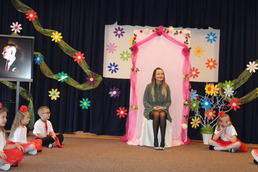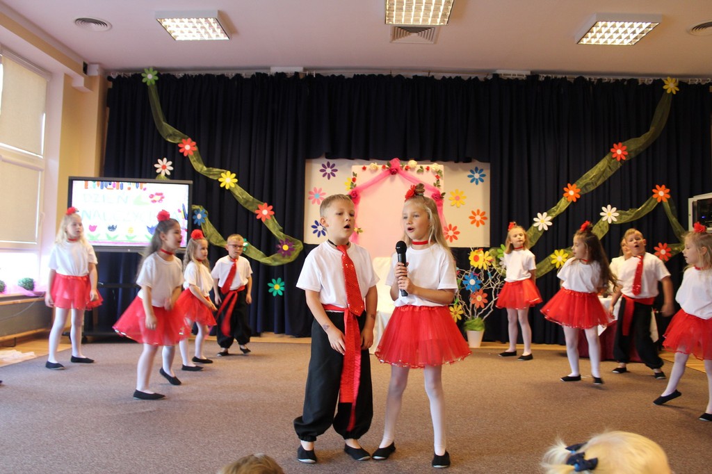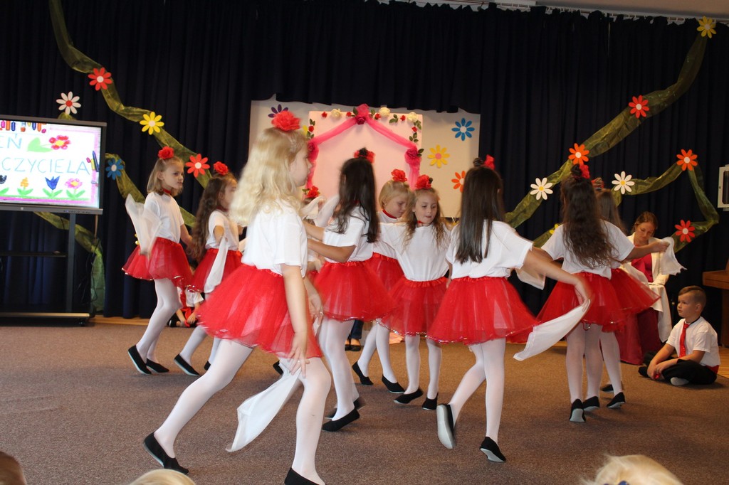 które specjalnie przygotowały na tę okazję występy. Przedszkolaki zaprezentowały " Koncert życzeń " ze specjalną dedykacją i piosenką dla każdego pracownika. Niespodzianka wywołała zachwyt, zaskoczenie i wzruszenie. Dzieci były bardzo dumne i pełne powagi podczas artystycznego wystąpienia. Sześciolatki otrzymały wielkie brawa. Pani Dyrektor i Burmistrz złożyli pracownikom przedszkola ciepłe życzenia radości i sił, których z pewnością nie zabraknie nam na kolejne miesiące. Dopełnieniem tej szczególnej uroczystości były róże i poczęstunek, który sponsorowany był przez Radę Rodziców. Za co serdecznie dziękujemy.