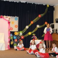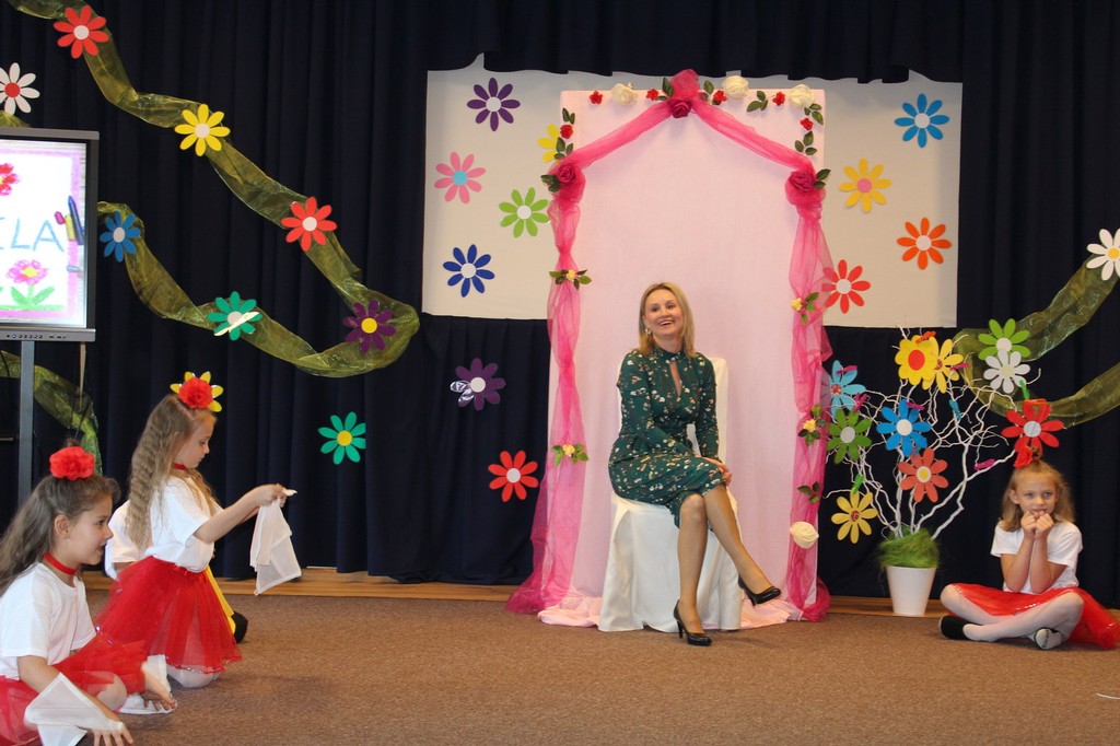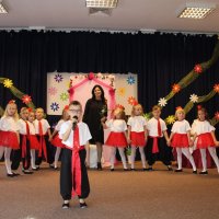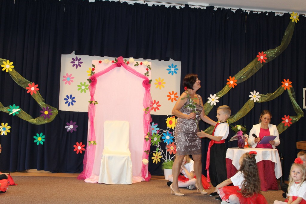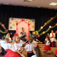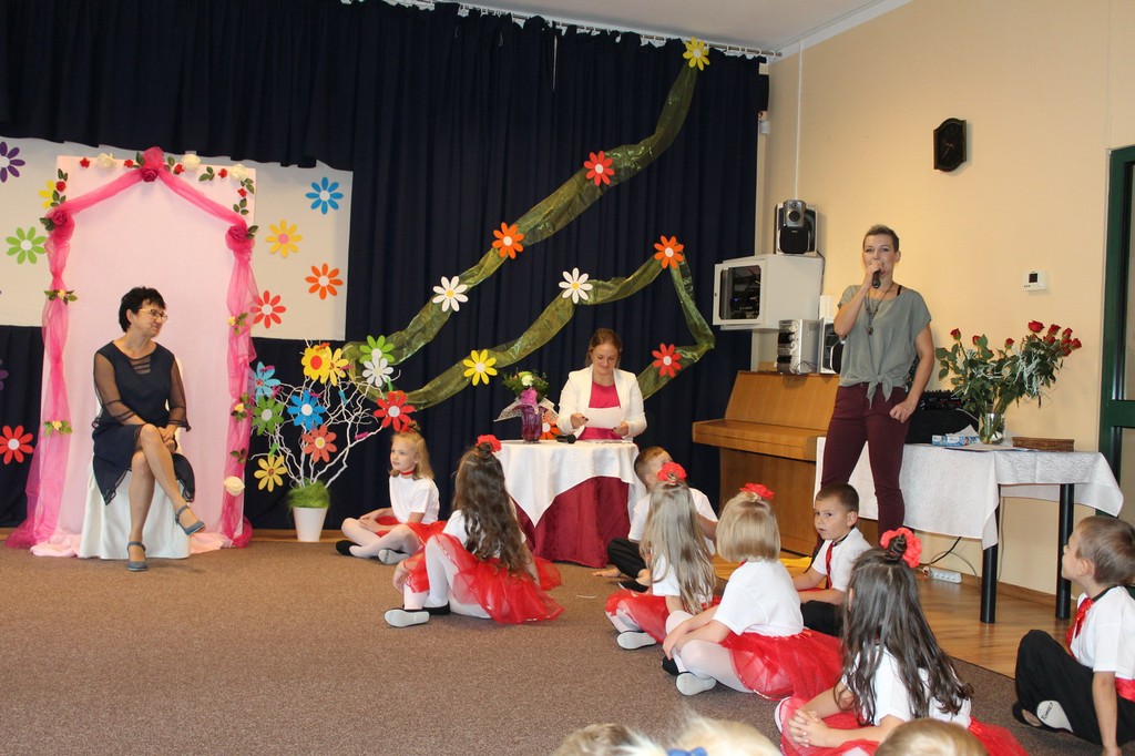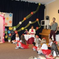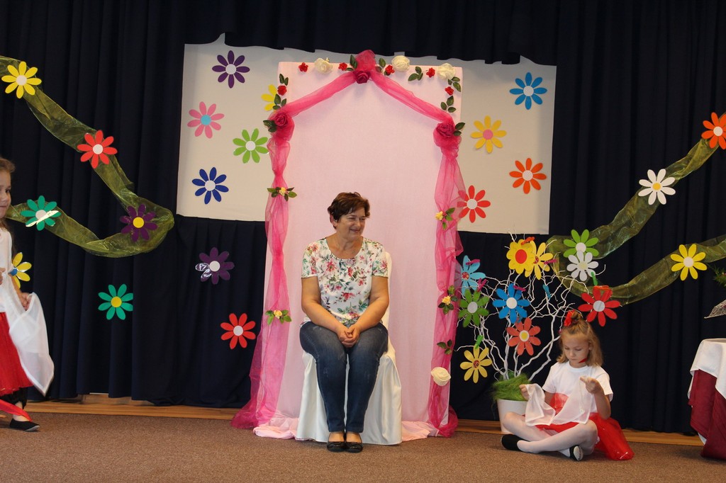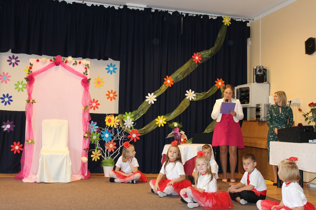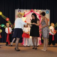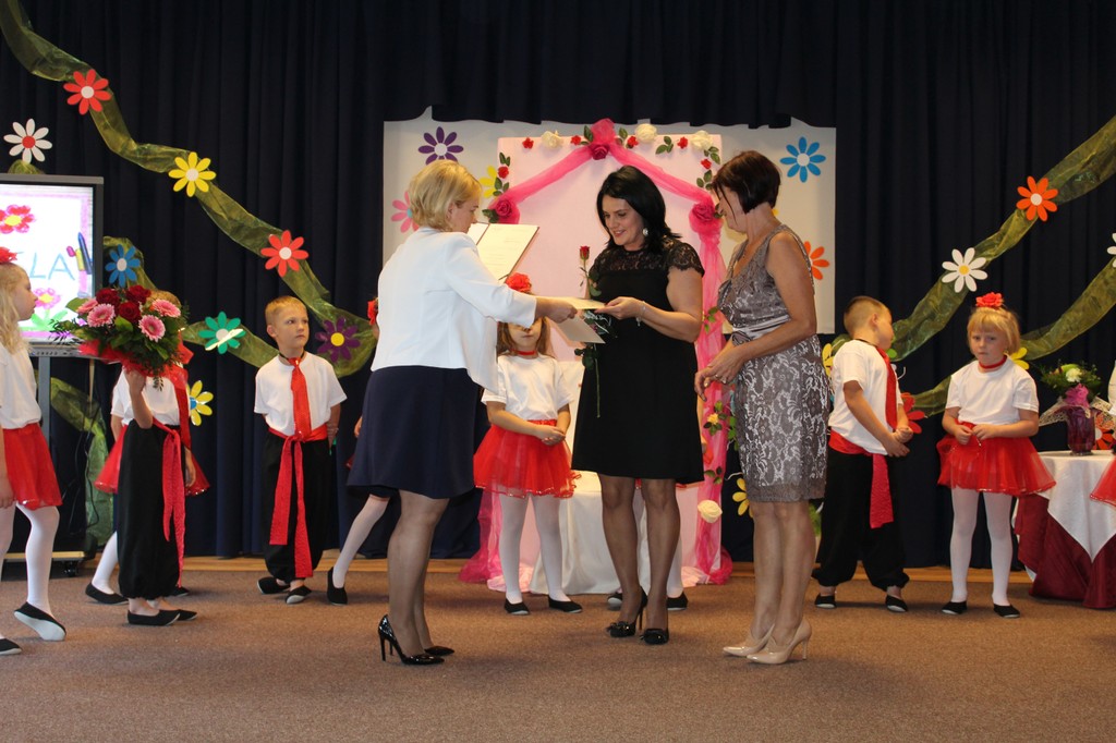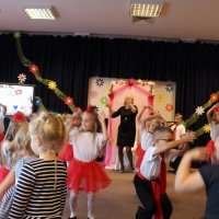 które specjalnie przygotowały na tę okazję występy. Przedszkolaki zaprezentowały " Koncert życzeń " ze specjalną dedykacją i piosenką dla każdego pracownika. Niespodzianka wywołała zachwyt, zaskoczenie i wzruszenie. Dzieci były bardzo dumne i pełne powagi podczas artystycznego wystąpienia. Sześciolatki otrzymały wielkie brawa. Pani Dyrektor i Burmistrz złożyli pracownikom przedszkola ciepłe życzenia radości i sił, których z pewnością nie zabraknie nam na kolejne miesiące. Dopełnieniem tej szczególnej uroczystości były róże i poczęstunek, który sponsorowany był przez Radę Rodziców. Za co serdecznie dziękujemy.