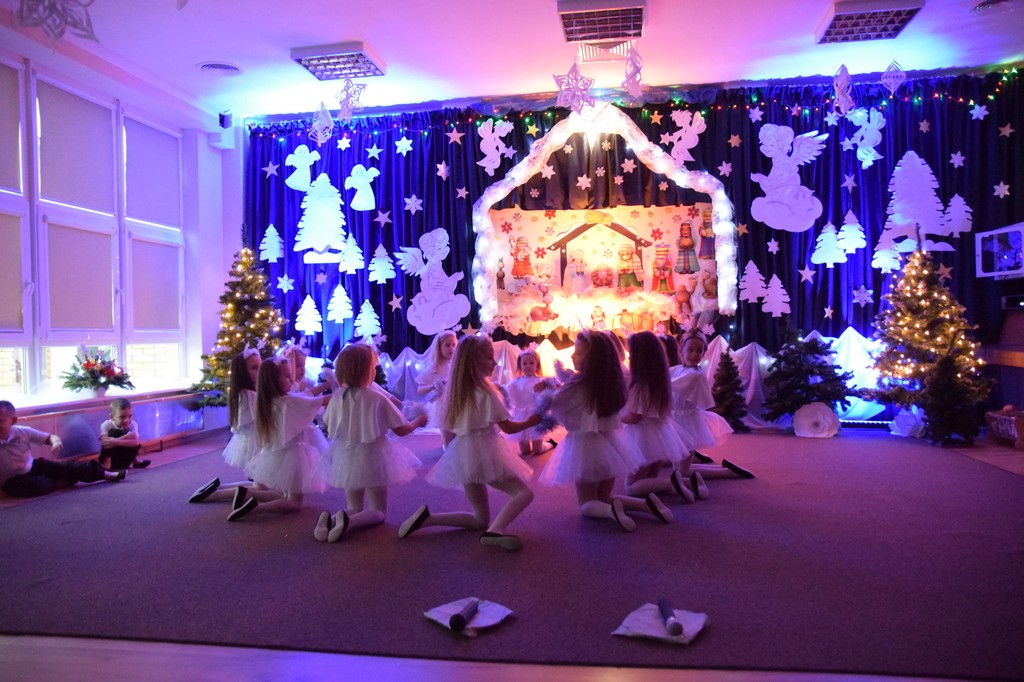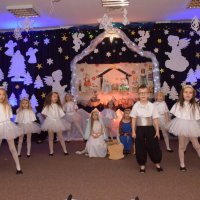 Dzieci z grupy " Wiewiórki " zaprosiły swoich najbliższych na Przedstawienie Bożonarodzeniowe. Piękna sceneria wprowadziła wszystkich zgromadzonych w świąteczny nastrój i uświadomiła, dlaczego co roku, z niecierpliwością czekamy właśnie na te święta.