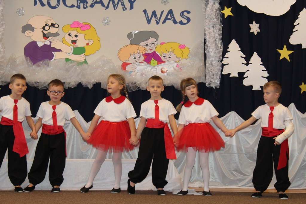 Przedszkolaki wspólnie ze swoimi paniami przygotowały część artystyczną, na której prezentowały swoje umiejętności recytatorskie, taneczne i wokalne. Wręczały również wykonane własnoręcznie prezenty. Dziadkowie z dumą patrzyli na swoje wnuczęta, które włożyły wiele wysiłku, aby jak najlepiej wyrazić swoją miłość i szacunek oraz podziękować za cierpliwość, zrozumienie i opiekę, a przede wszystkim za czas, który zawsze mają dla swoich wnuków. Były to wyjątkowe dni, pełne radości i dumy. Szczęśliwe, uśmiechnięte, rozpromienione twarze Babć i Dziadków po raz kolejny ukazały nam, jak ważne są takie spotkania i wspólnie spędzone chwile z wnukami.