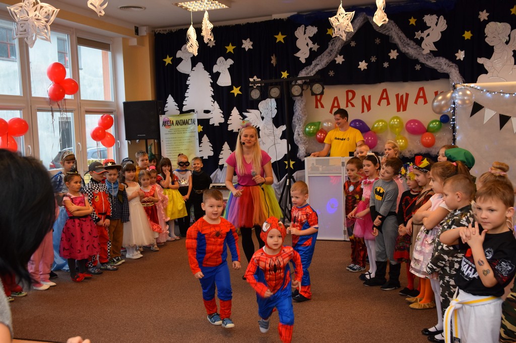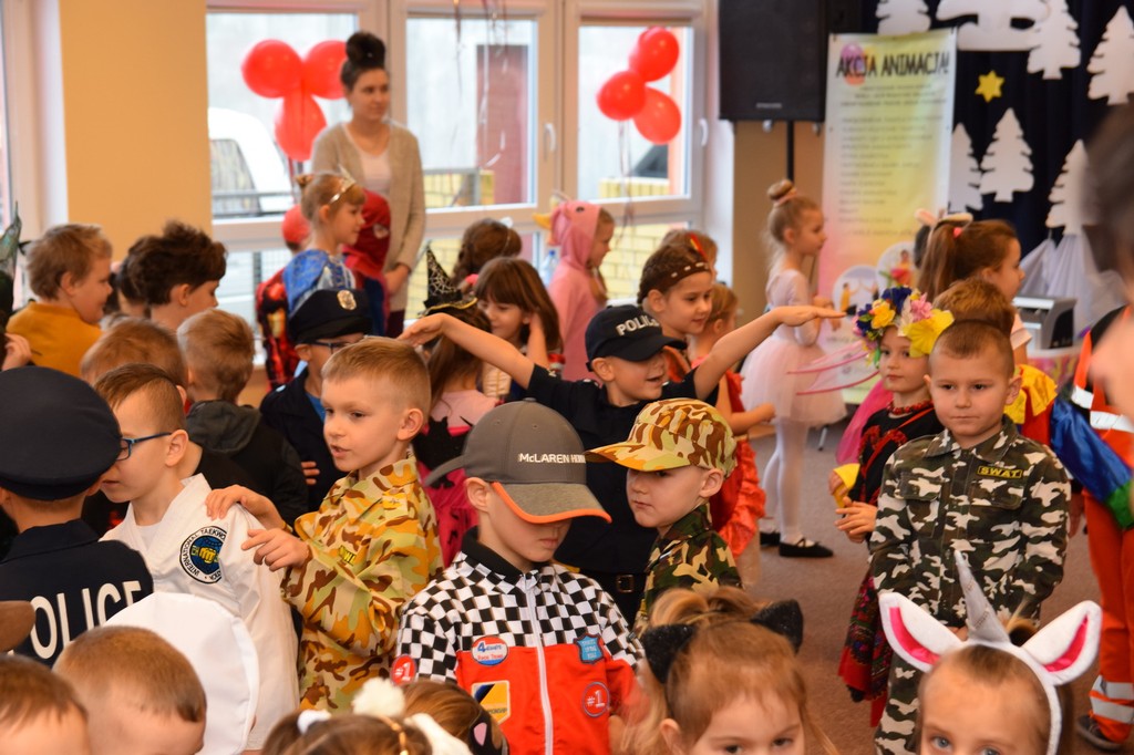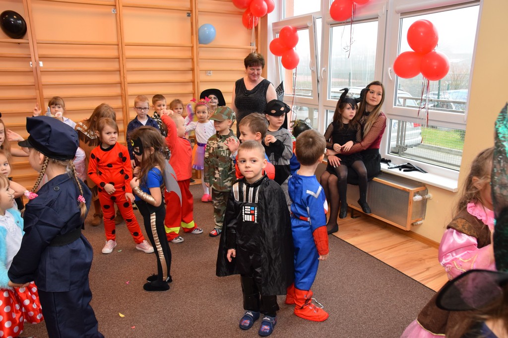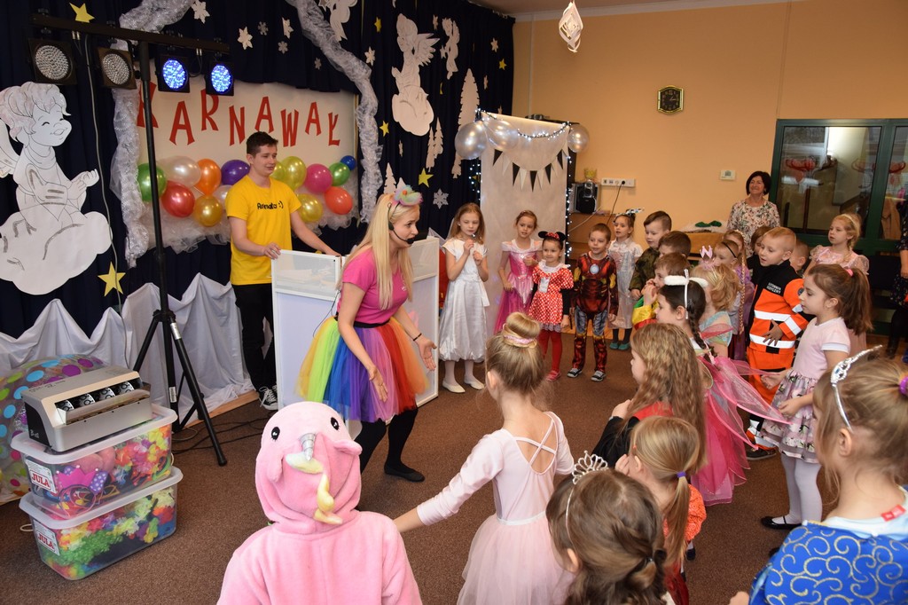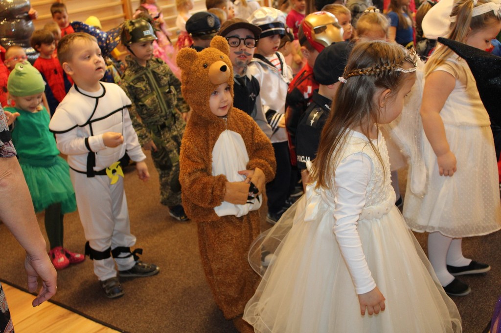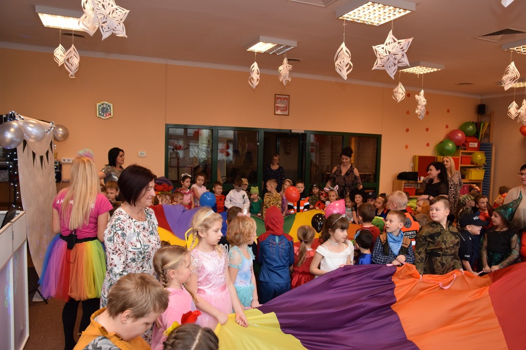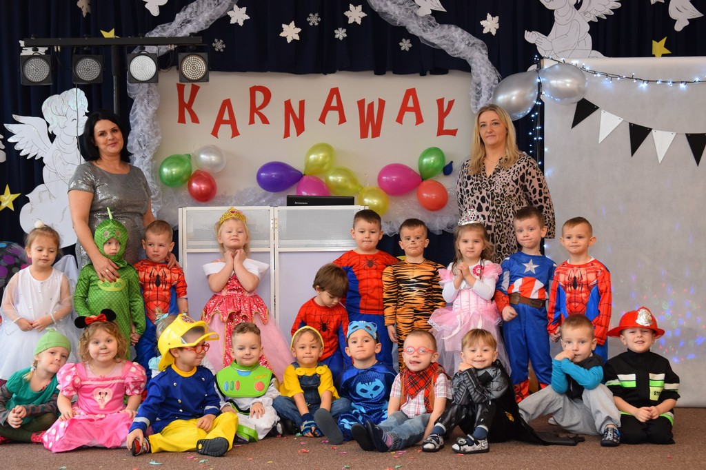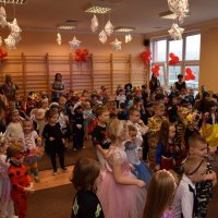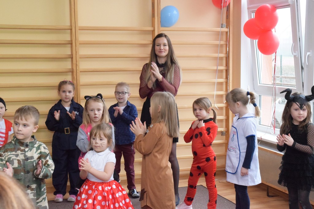 W piątek 15 lutego 2019 roku w przedszkolu odbył się Bal Karnawałowy, który prowadził zespół „Pięciolinia". Już od wejścia można było wyczuć niecodzienny nastrój. Opowiadaniom, dyskusjom i wzajemnemu podziwianiu nie było końca. Po śniadaniu, już wszyscy gotowi do zabawy, rozpoczęli bal. Dzieci, przebrane w barwne i pomysłowe stroje, bawiły się świetnie, a skoczna i rytmiczna muzyka zachęcała je do tańców. Po wielkiej prezentacji strojów rozpoczęły się tańce – przy rytmach wesołej muzyki.
