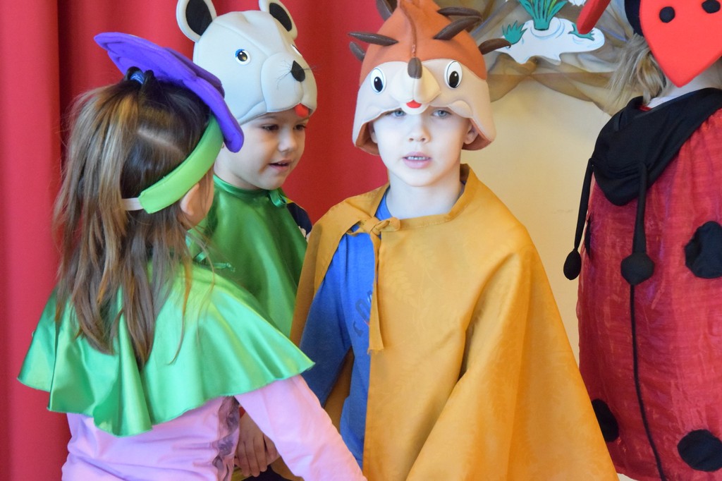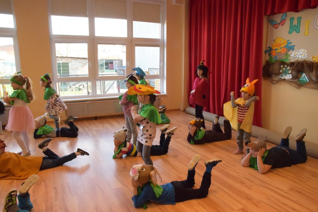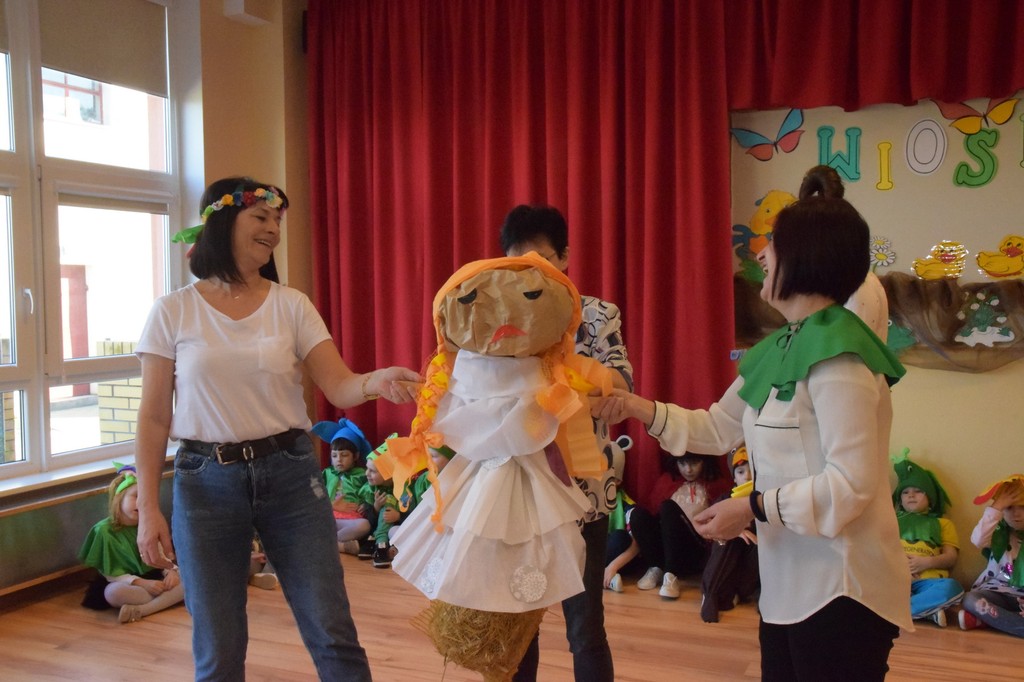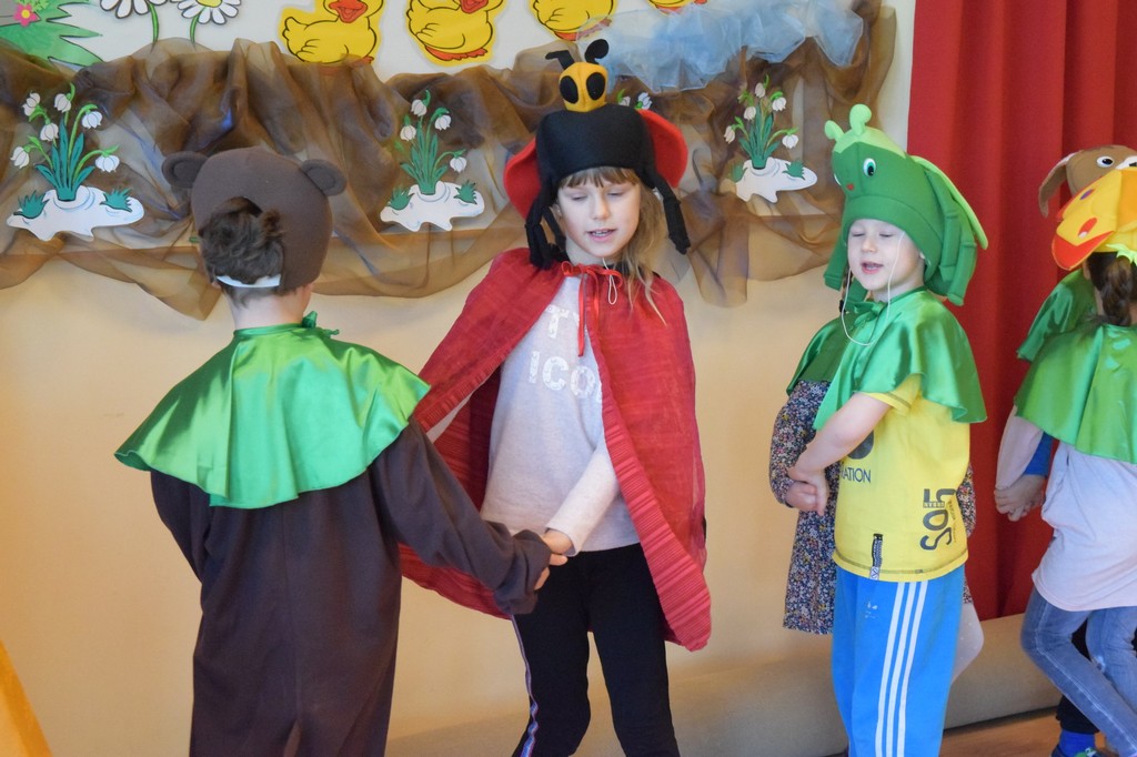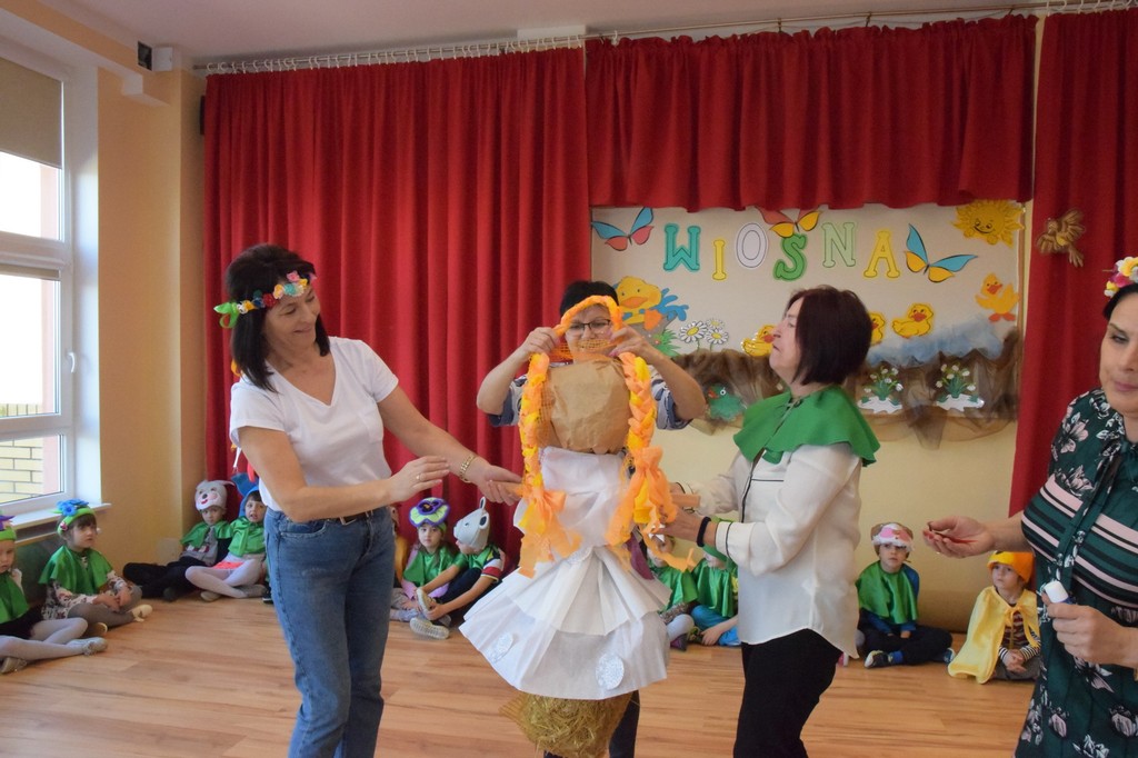 20 i 21 marca to u nas w przedszkolu same niespodzianki. Robiliśmy „Marzannę", oglądaliśmy przedstawienie przygotowane przez grupę „Misie"- „Przyjście wiosny". 20 marca udaliśmy się do GOK gdzie obejrzeliśmy przedstawienie o wiośnie
