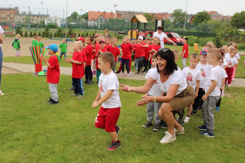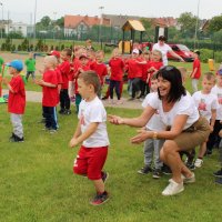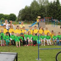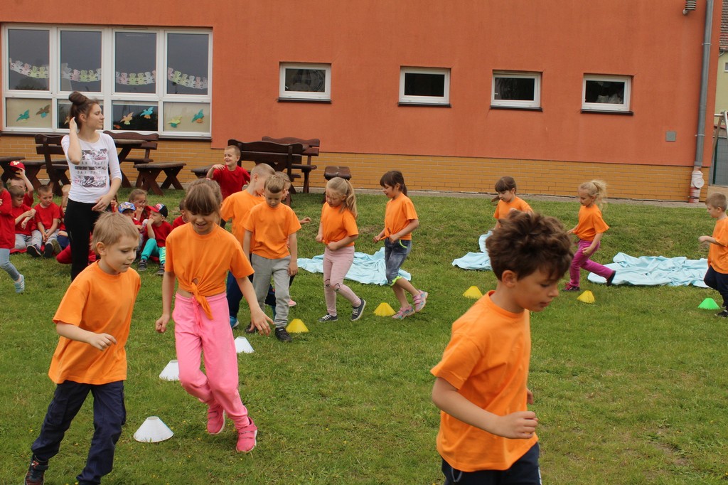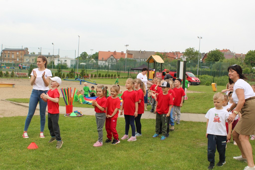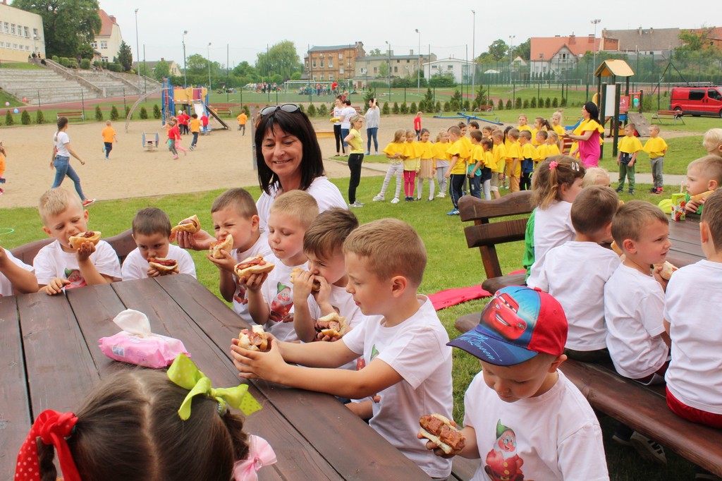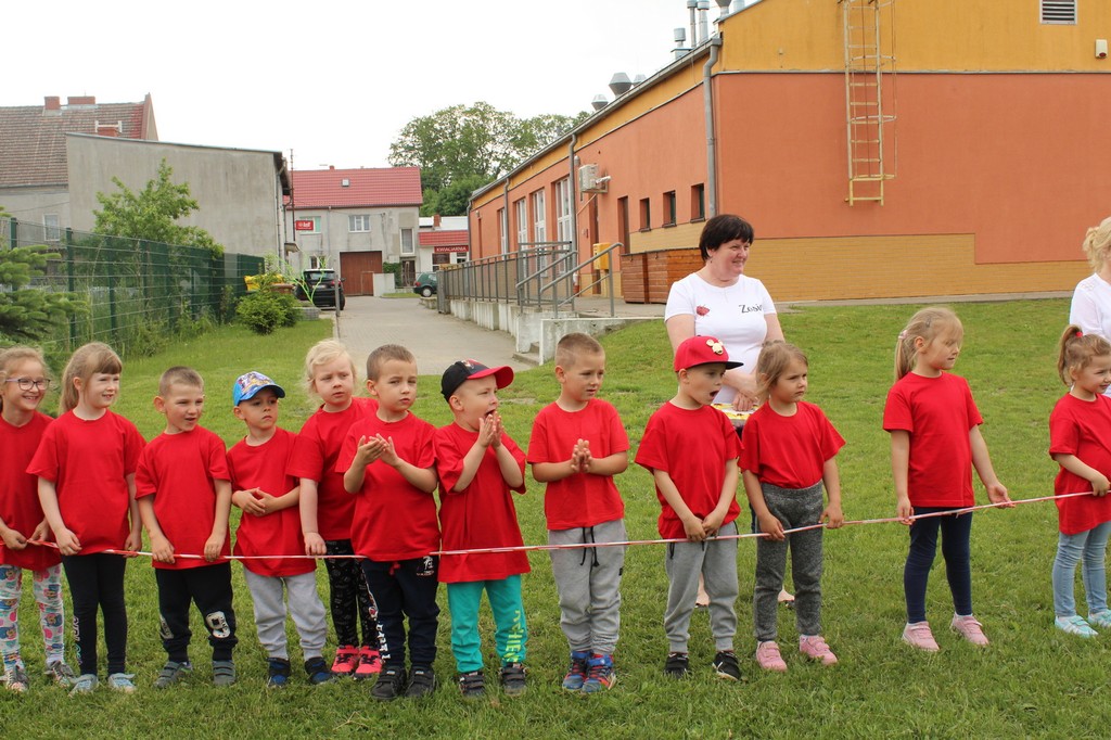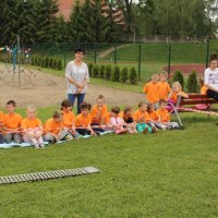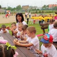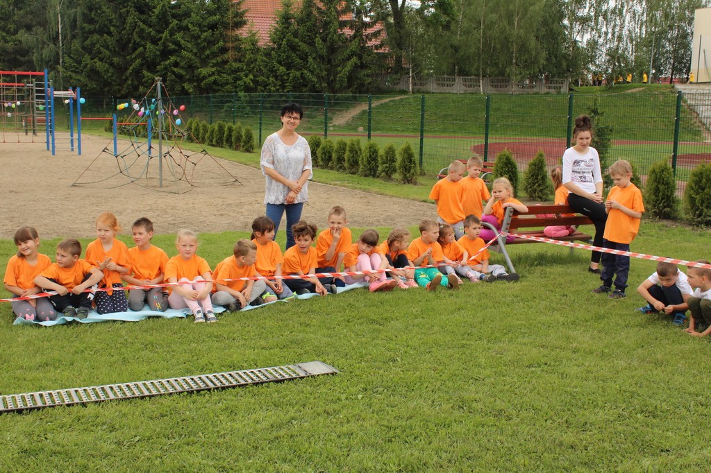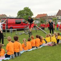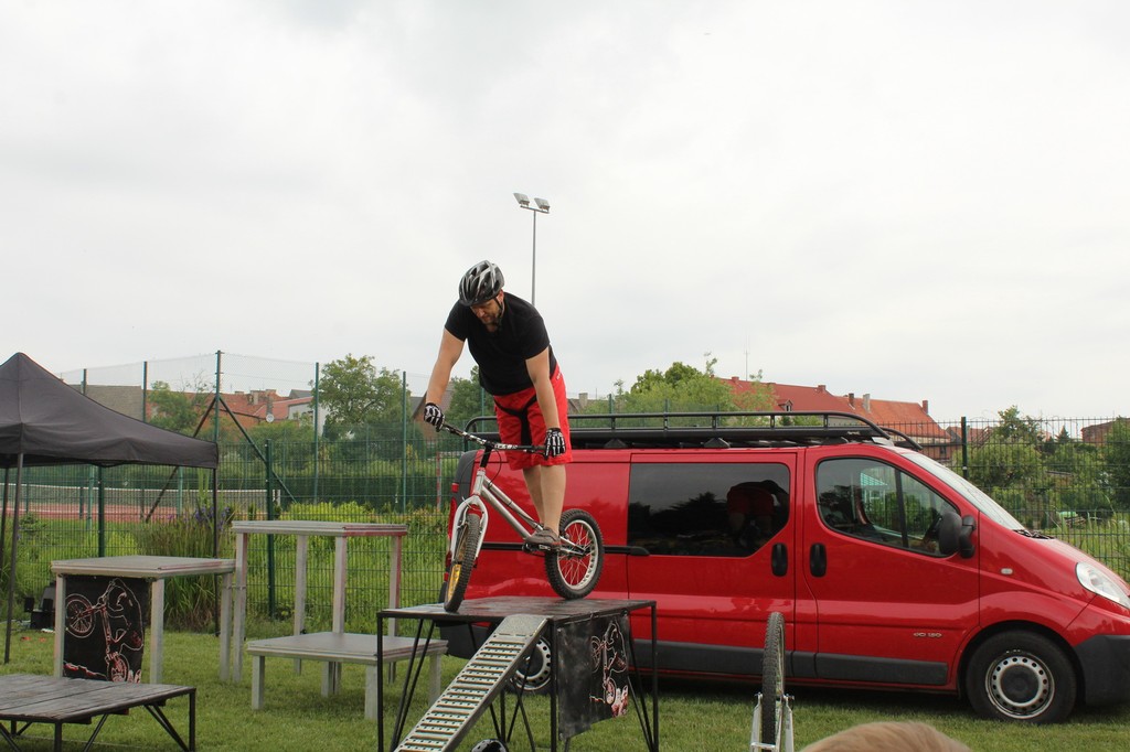 pokaz trialu rowerowego w wykonaniu pana Mateusza Kowalczyka. Instruktor zaangażował chętne dzieci do jazdy na rowerze. Dzieci brały udział w zawodach sportowych w swoich grupach. W formie zabawy ćwiczyły sprawność ruchową, uczyły się zdrowej rywalizacji, przestrzegania zasad fair- play oraz radzenia sobie z porażkami. W trakcie imprezy dzieci zajadały się kiełbaską z grilla popijając sokiem. Wszystkim dzieciom wręczono dyplomy.