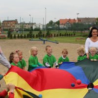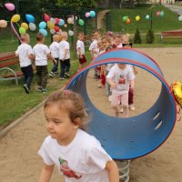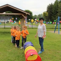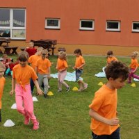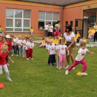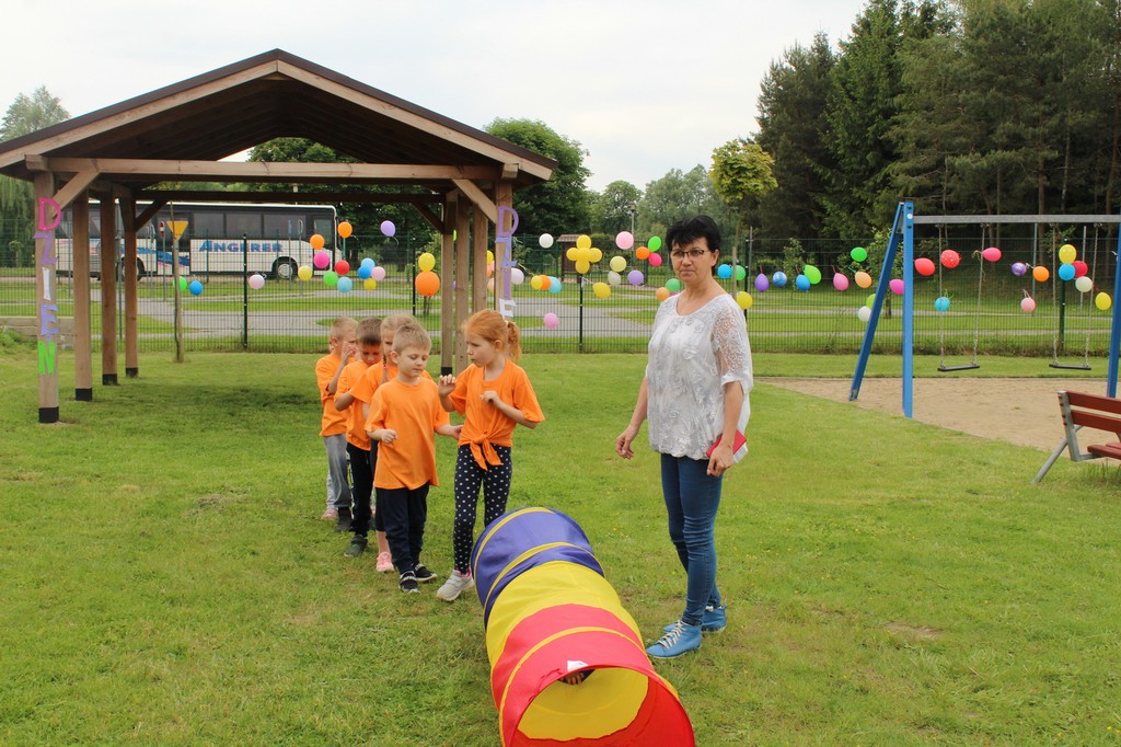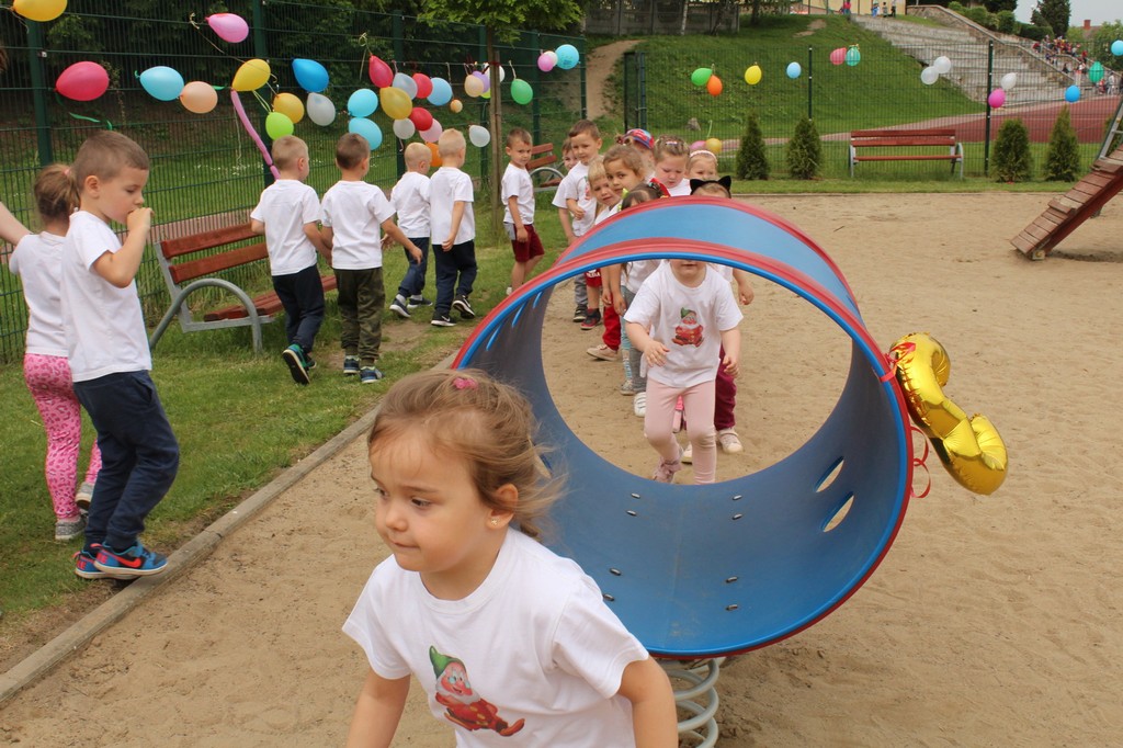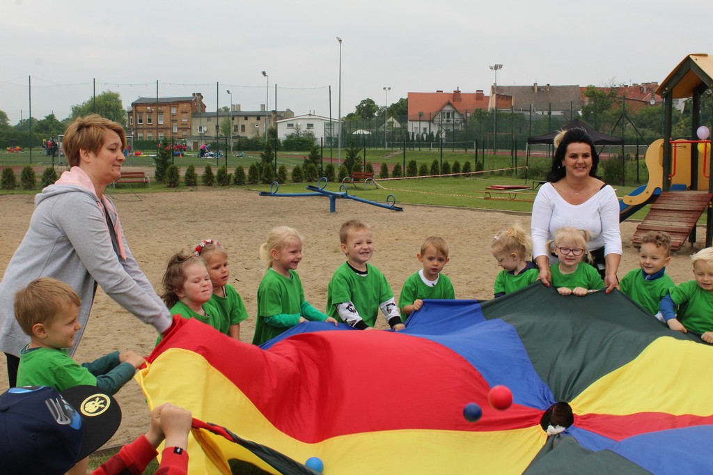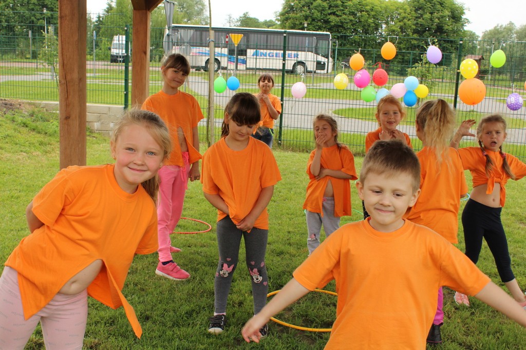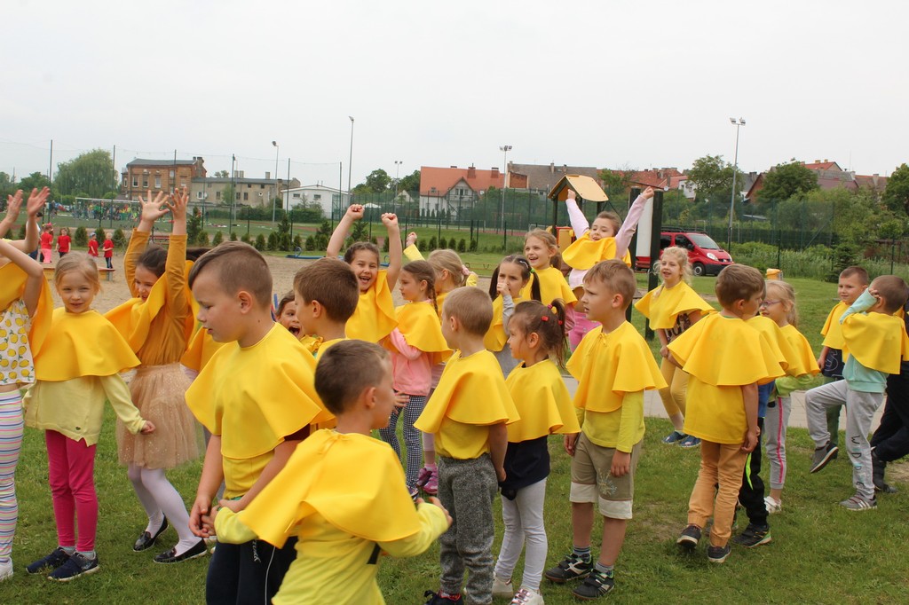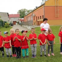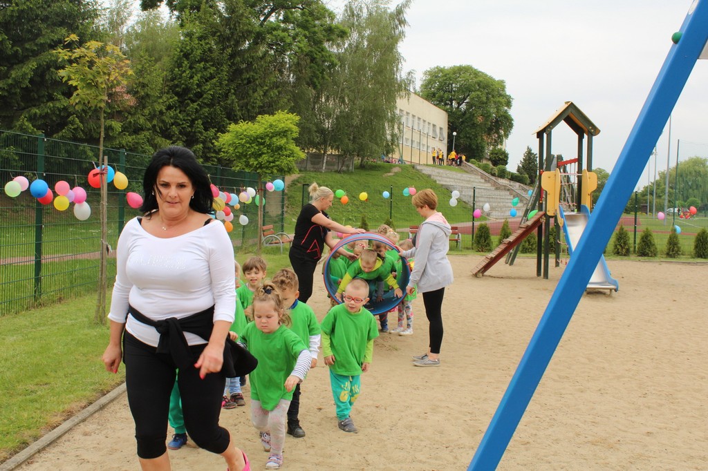 pokaz trialu rowerowego w wykonaniu pana Mateusza Kowalczyka. Instruktor zaangażował chętne dzieci do jazdy na rowerze. Dzieci brały udział w zawodach sportowych w swoich grupach. W formie zabawy ćwiczyły sprawność ruchową, uczyły się zdrowej rywalizacji, przestrzegania zasad fair- play oraz radzenia sobie z porażkami. W trakcie imprezy dzieci zajadały się kiełbaską z grilla popijając sokiem. Wszystkim dzieciom wręczono dyplomy.