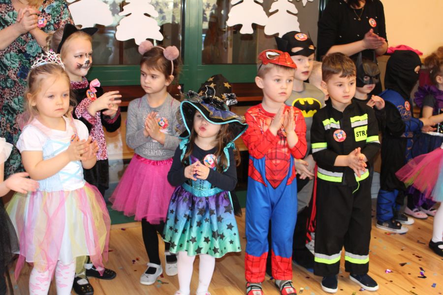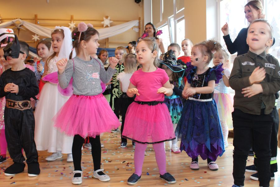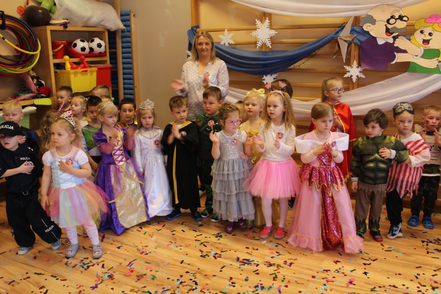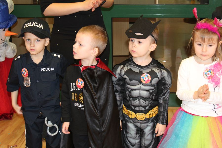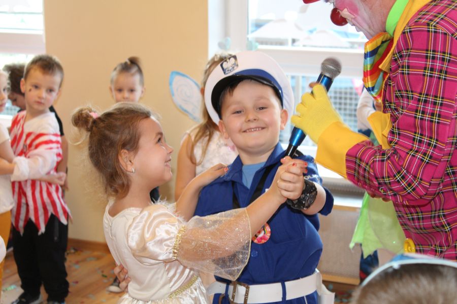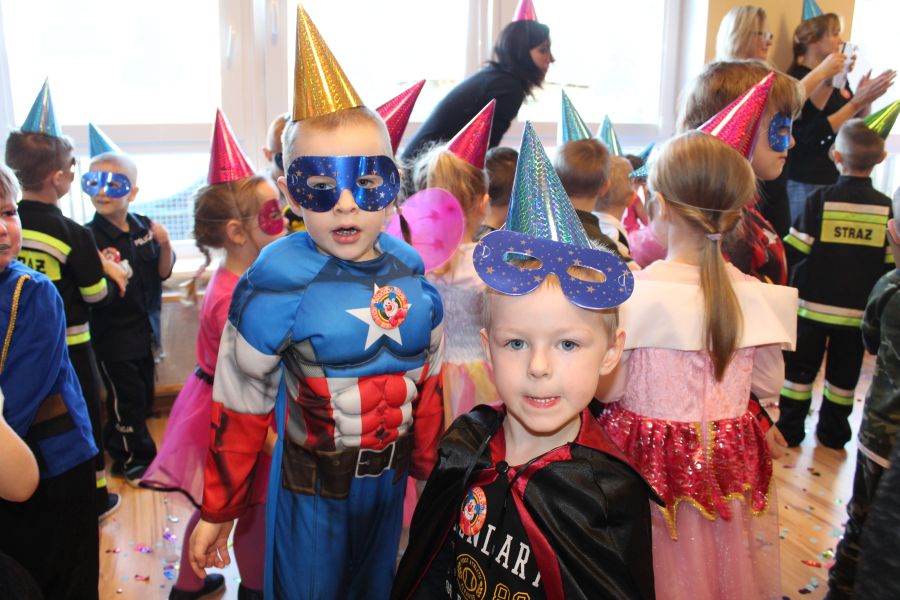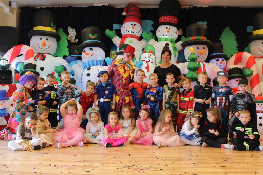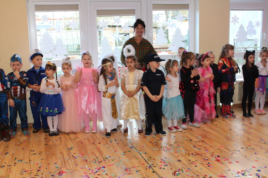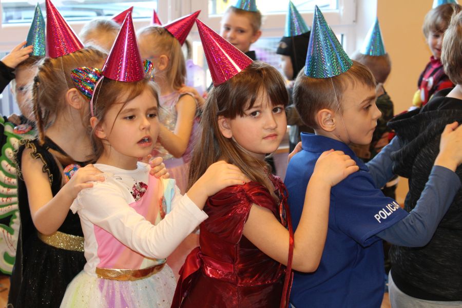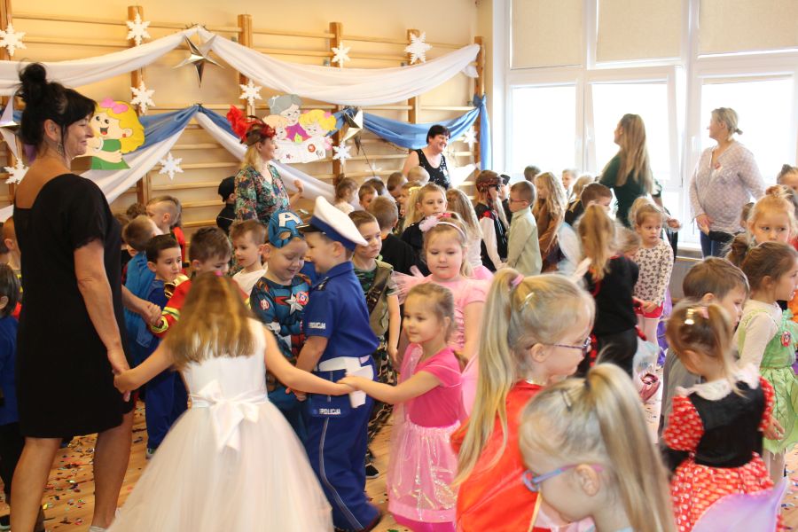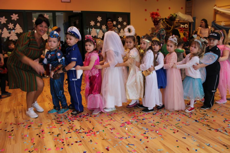 Dla przedszkolaków to dzień szczególny, często wyczekiwany przez wiele tygodni. Dzieci tego dnia miały okazję przebrać się za różne postacie z bajek i nie tylko. Na balu można było spotkać: wróżki, księżniczki, biedronki, rycerzy, policjantów, strażaków, Spider – manów itp. Z wielką ochotą uczestniczyły w tańcach, zabawach i konkursach prowadzonych przez clowna i jego asystentkę. W trakcie zabawy dzieci obdarowane były karnawałowymi czapeczkami, maskami, trąbkami i odznakami. Nie zabrakło też słodkiego poczęstunku - lizaków. Największą atrakcją było malowanie na kolorowo włosów. Na twarzach przedszkolaków malował się uśmiech, który nie znikał mimo zmęczenia. Bal był okazją do zintegrowania dzieci i pozostawił wiele niesamowitych wrażeń. Następny bal już za rok!!!