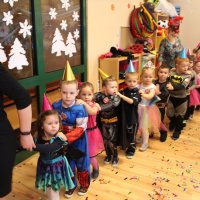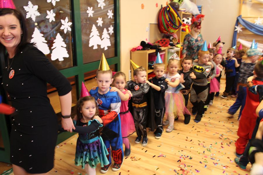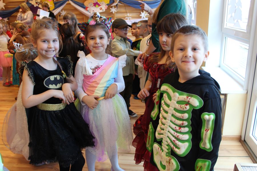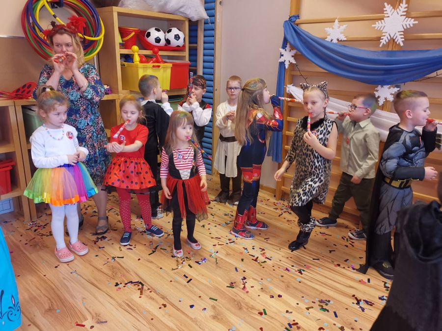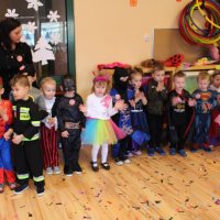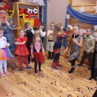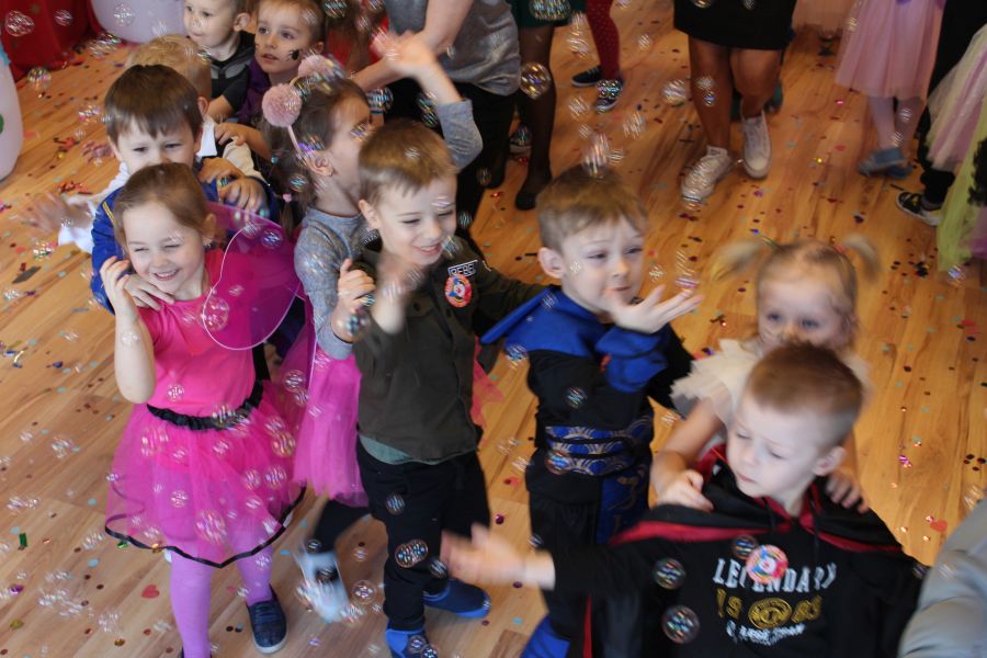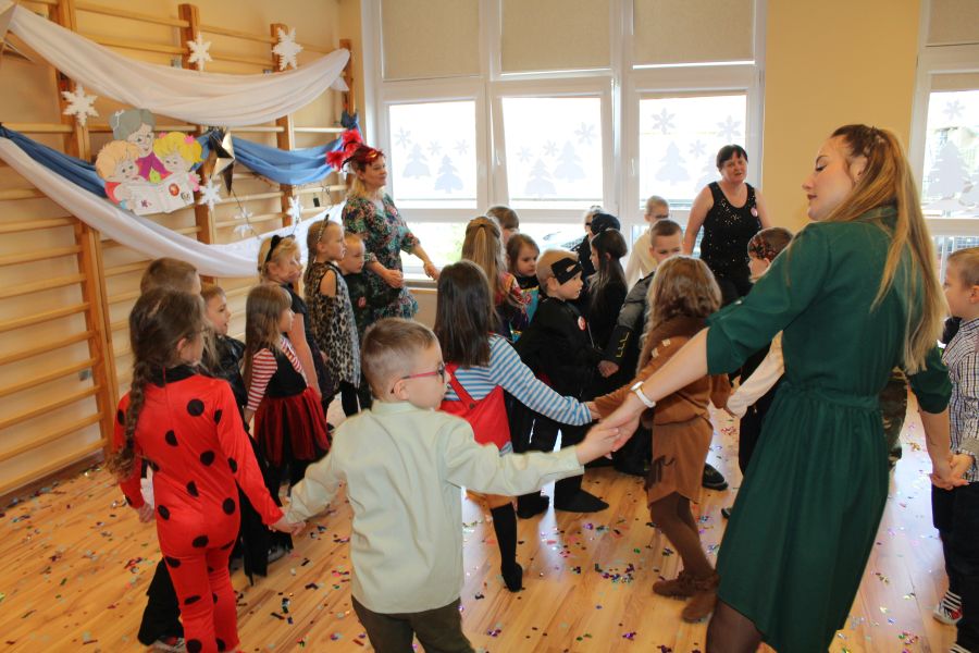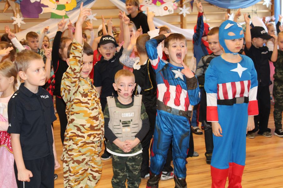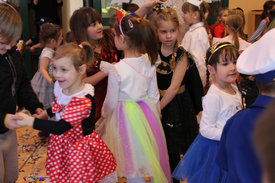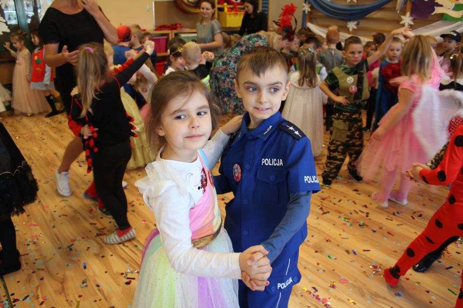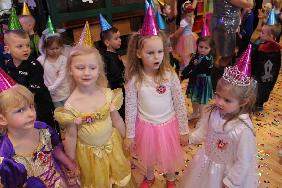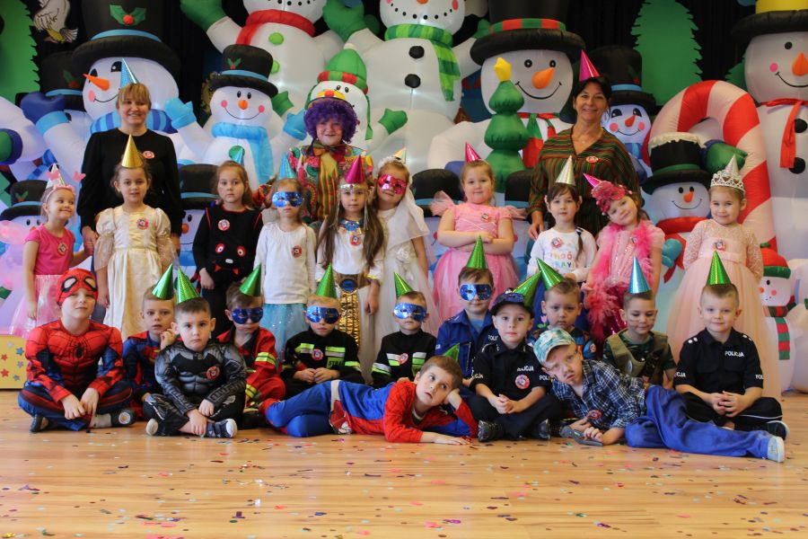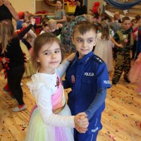 Dla przedszkolaków to dzień szczególny, często wyczekiwany przez wiele tygodni. Dzieci tego dnia miały okazję przebrać się za różne postacie z bajek i nie tylko. Na balu można było spotkać: wróżki, księżniczki, biedronki, rycerzy, policjantów, strażaków, Spider – manów itp. Z wielką ochotą uczestniczyły w tańcach, zabawach i konkursach prowadzonych przez clowna i jego asystentkę. W trakcie zabawy dzieci obdarowane były karnawałowymi czapeczkami, maskami, trąbkami i odznakami. Nie zabrakło też słodkiego poczęstunku - lizaków. Największą atrakcją było malowanie na kolorowo włosów. Na twarzach przedszkolaków malował się uśmiech, który nie znikał mimo zmęczenia. Bal był okazją do zintegrowania dzieci i pozostawił wiele niesamowitych wrażeń. Następny bal już za rok!!!