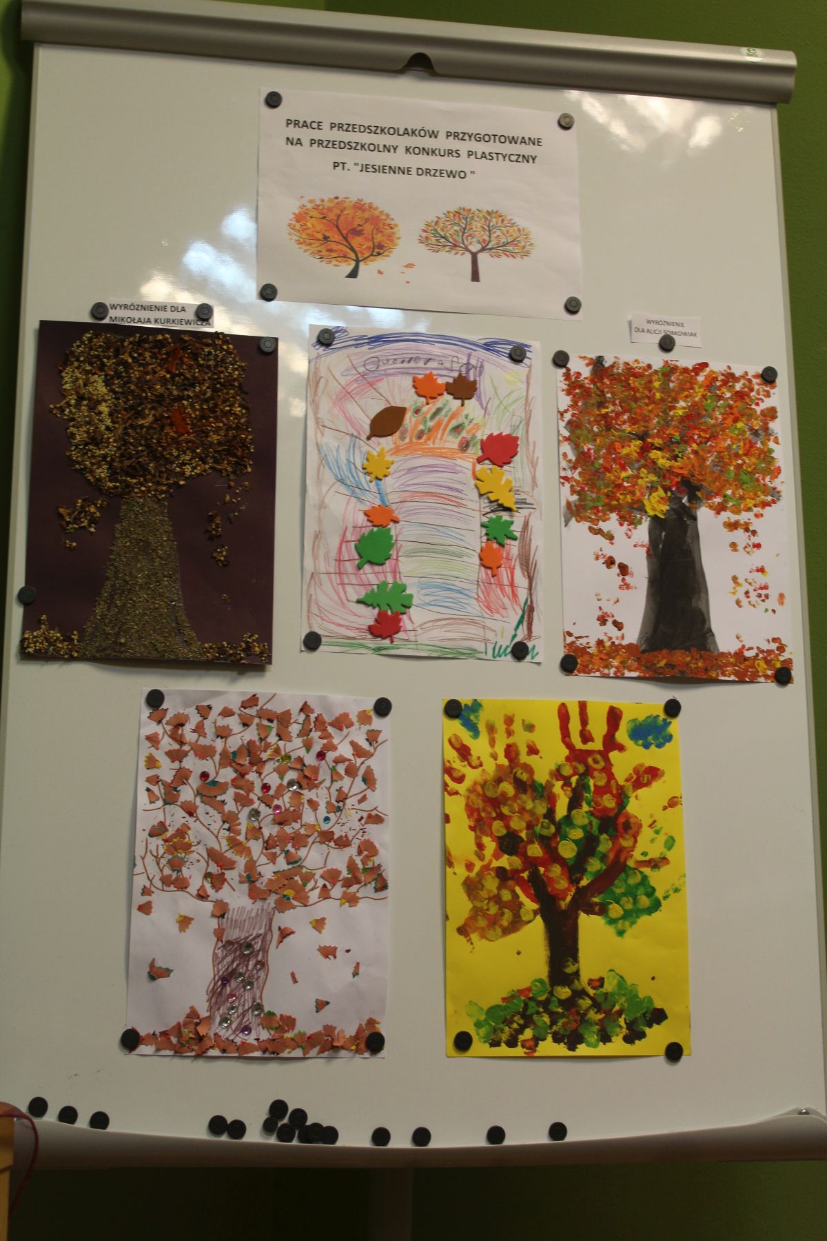 W naszym przedszkolu odbył się konkurs plastyczny zorganizowany przez nauczycielkę Ewelinę Świrską. Tematem konkursu były jesienne drzewa . Poziom prac wskazywał, że dzieci oraz rodzice dostrzegają piękno natury i otaczających ich drzew, a także umieją wykorzystywać i zestawiać różnorodne techniki plastyczne. Wszystkie zgłoszone prace były piękne, pomysłowe i pracochłonne.