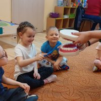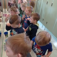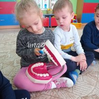 Każda z grup sumiennie realizowała program poprzez różnorodne formy: plastyczne, edukacyjne, zabawowe, oglądowe. Przeprowadzone zajęcia uświadomiły dzieciom jak ważna jest dbałość o higienę jamy ustnej, po to, aby nasze ząbki były zawsze zdrowe, a na naszej twarzy gościł piękny uśmiech.
