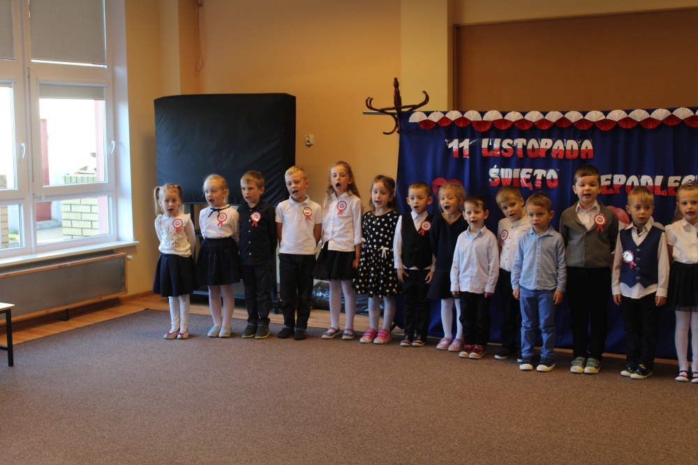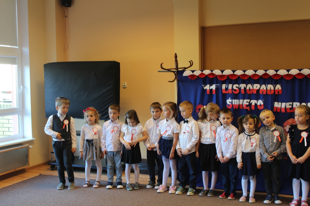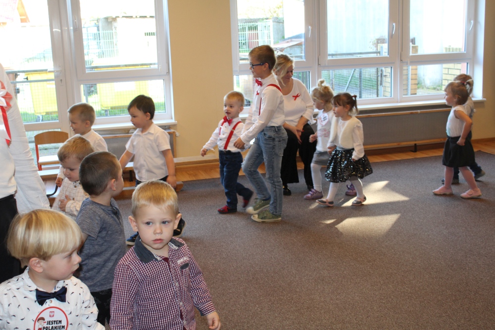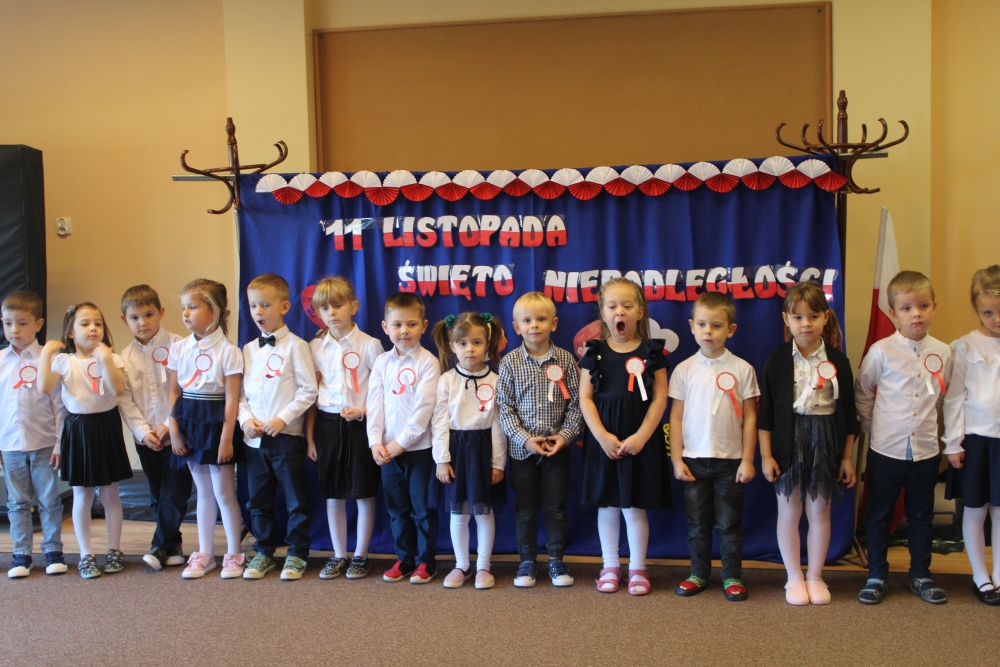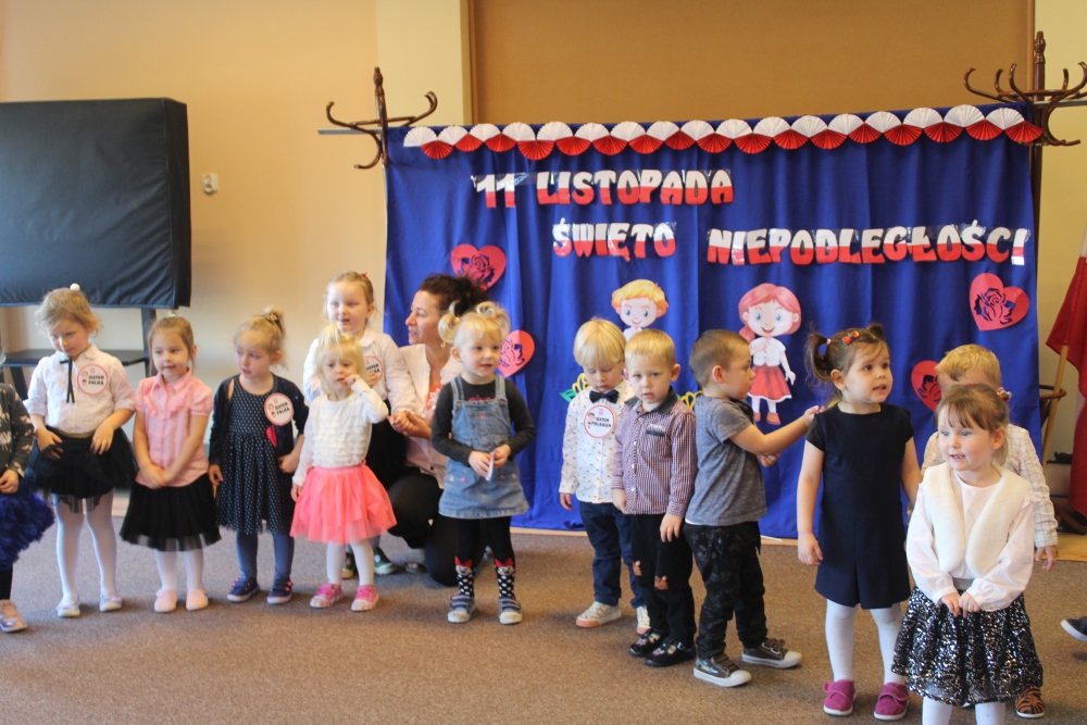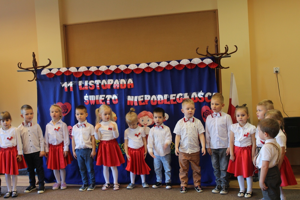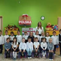 Uczciliśmy w naszym przedszkolu tradycyjnie. Było wspólne odśpiewanie hymnu państwowego oraz prezentacje artystyczne przygotowane przez wszystkie grupy specjalnie na tę okoliczność. Wcześniej dzieci wykonywały prace plastyczne, które ozdobiły kąciki wystaw na biało i czerwono.