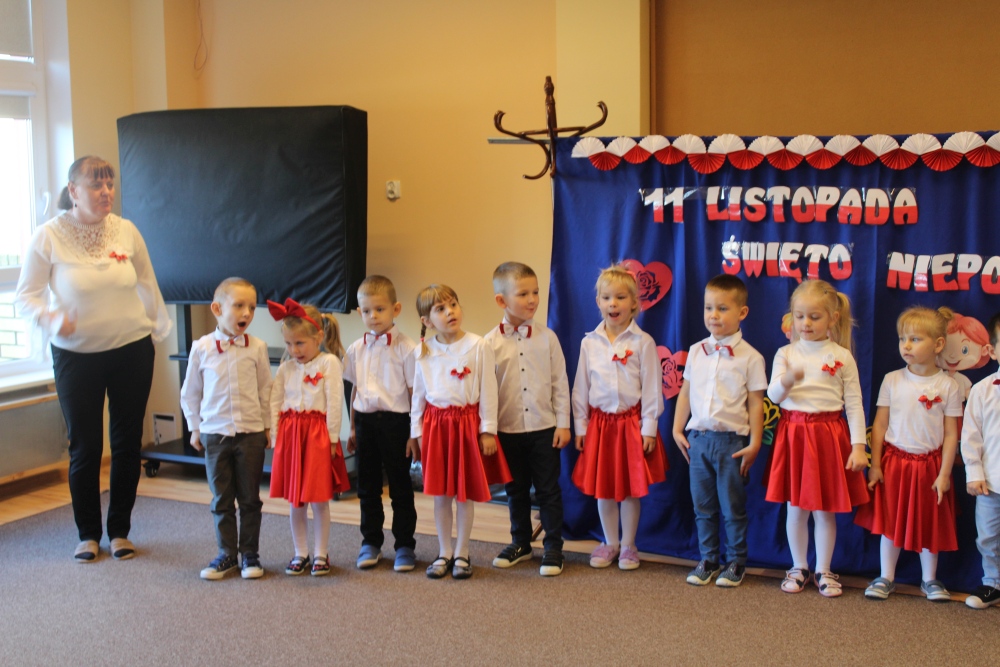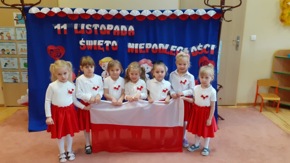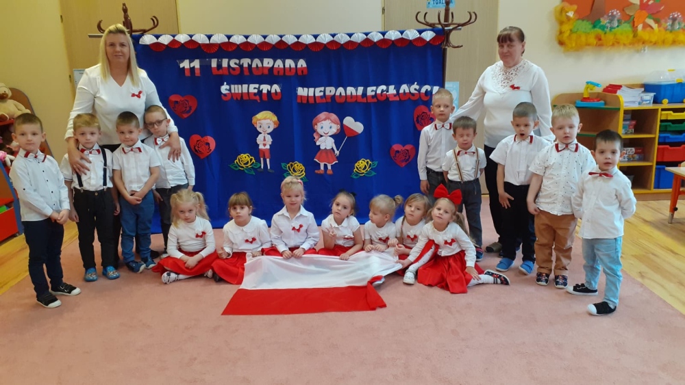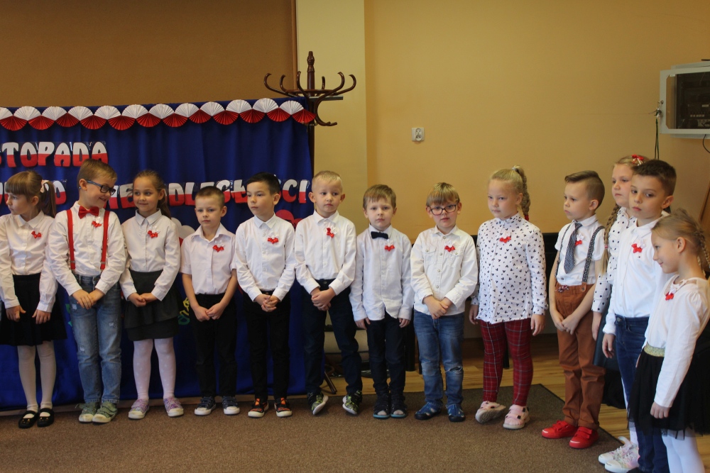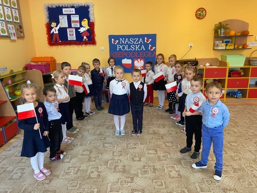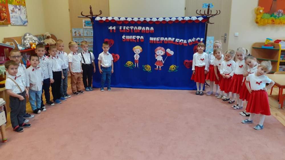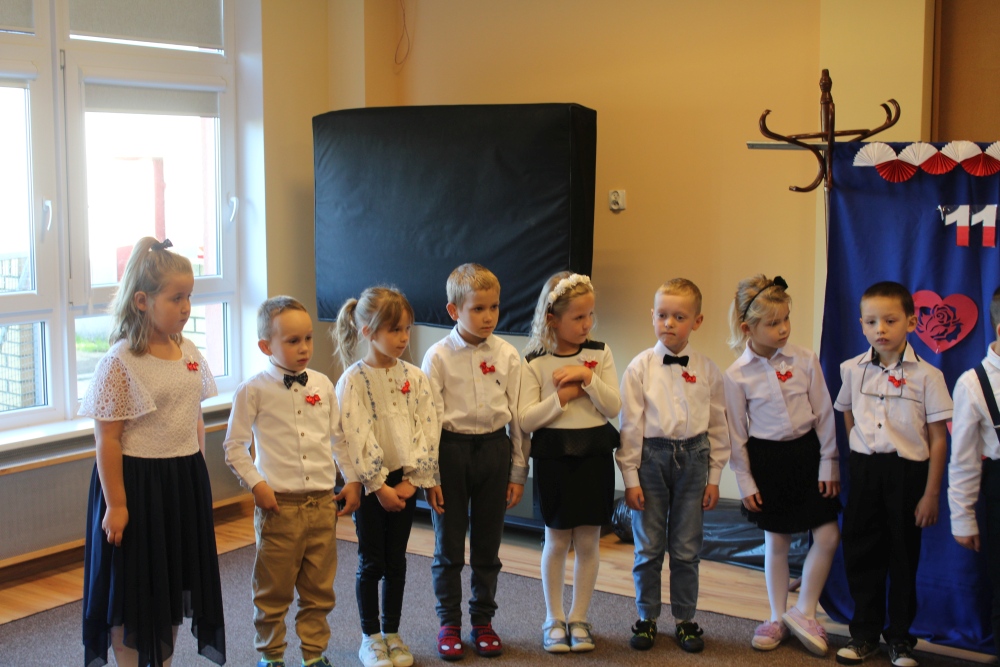 Uczciliśmy w naszym przedszkolu tradycyjnie. Było wspólne odśpiewanie hymnu państwowego oraz prezentacje artystyczne przygotowane przez wszystkie grupy specjalnie na tę okoliczność. Wcześniej dzieci wykonywały prace plastyczne, które ozdobiły kąciki wystaw na biało i czerwono.