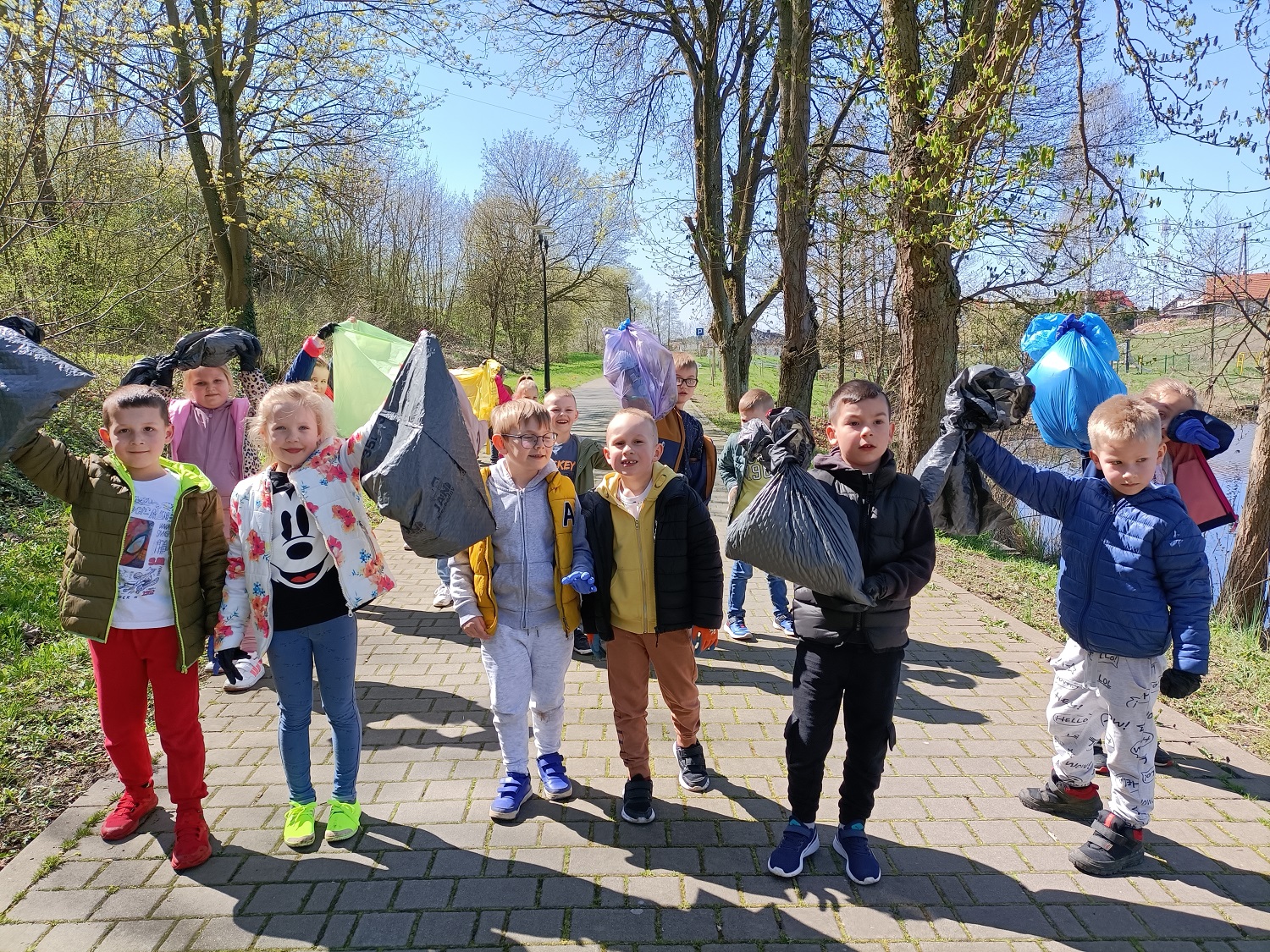 W tym roku nasze przedszkole postanowiło włączyć się w akcję „ Sprzątamy dla Polski”. Wydarzenie odbyło się 21 kwietnia 2023 roku, w którym wzięły udział wszystkie grupy przedszkolne. W tym pięknym dniu dzieci wraz z nauczycielami wyruszyły zaopatrzone w gumowe rękawice i worki na wielkie sprzątanie terenu, który znajduje się w pobliżu przedszkola.