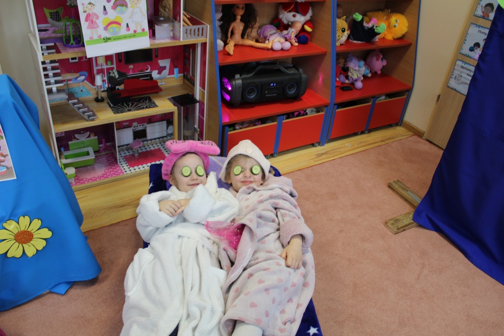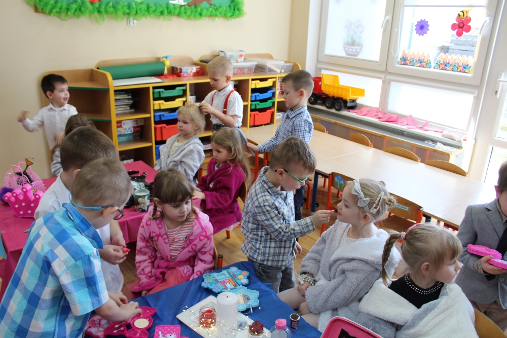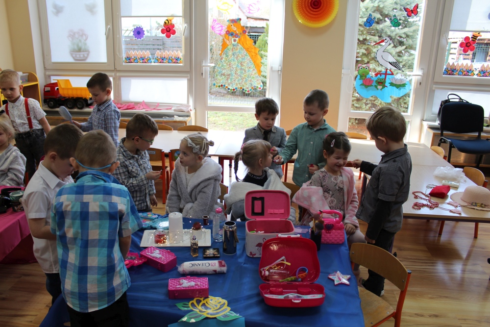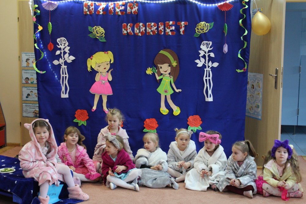 Dzień kobiet to ważne święto dla każdej Pani- tej dorosłej oraz najmłodszej. W tym dniu Panowie starają się, aby każda dama nawet ta najmłodsza czuła się wyjątkowo. Z okazji Dnia Kobiet cała sala w grupie Krasnoludków przekształciła się we wspaniałe SPA. Tam, ubrane oczywiście w wygodne szlafroki, mogły skorzystać z manicure, pedicure, salonu fryzjerskiego czy też możliwości odpoczynku. Oczywiście wszystkie te zabiegi dzielnie wykonywali nasi mali Panowie i dbali o to, aby nasze małe Kobietki czuły się komfortowo.