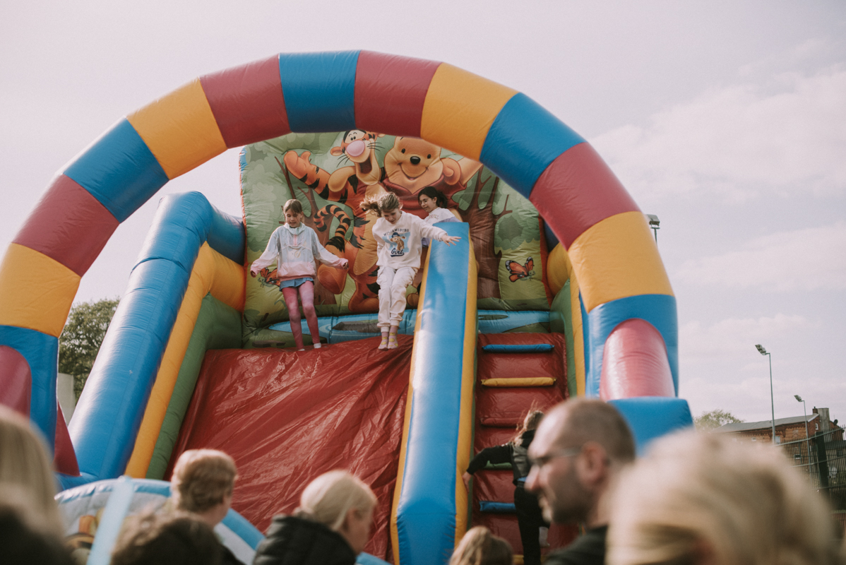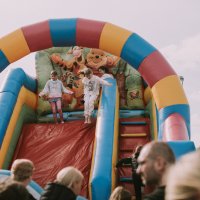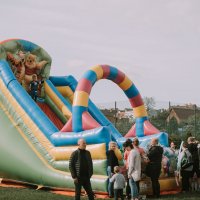 Dzieci mogły odbyć przejażdżkę na kucyku o imieniu Perełka, który zachwycał swoim umaszczeniem. Kuca gościliśmy dzięki jego właścicielce pani Izabeli Przybysz. W narożniku placu urósł piękny kolorowy dmuchany Zamek. Był cały czas oblegany, więc trzeba było stać w długiej kolejce aby się na niego dostać by po chwili zjechać na dół.