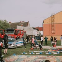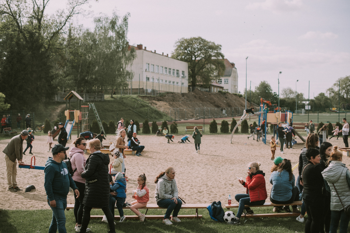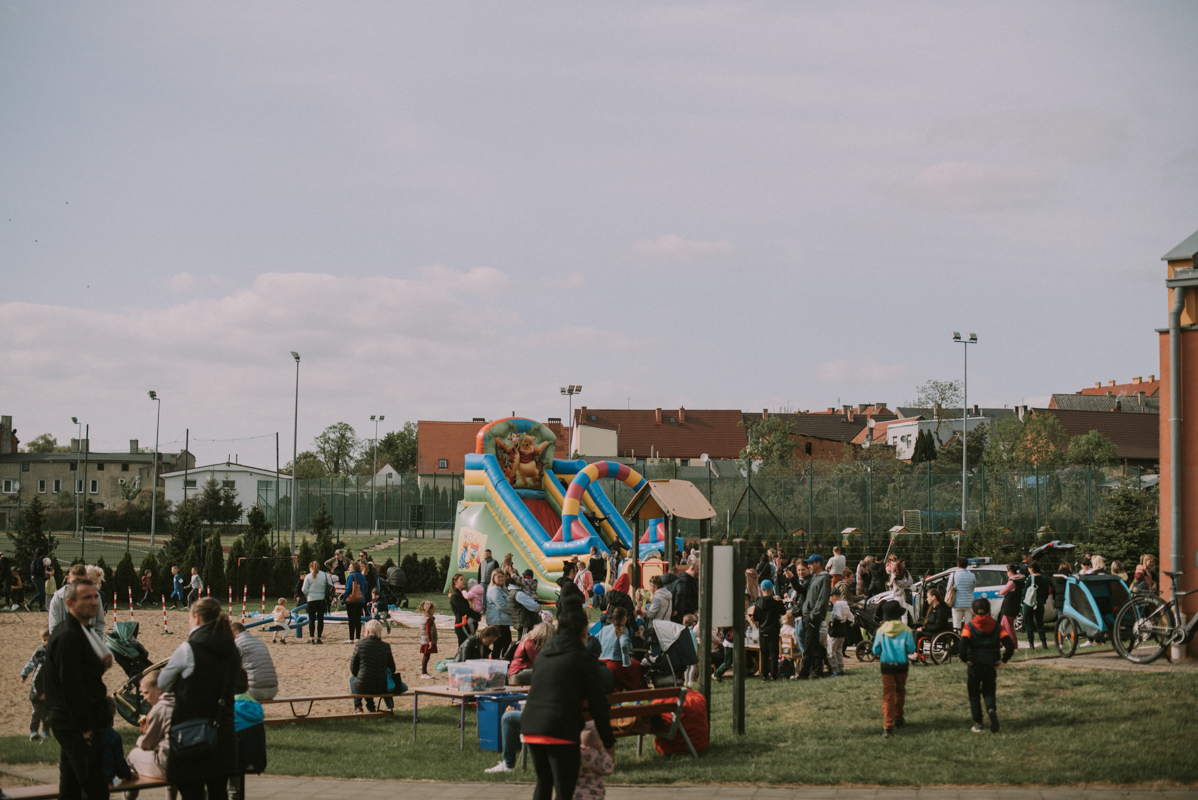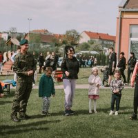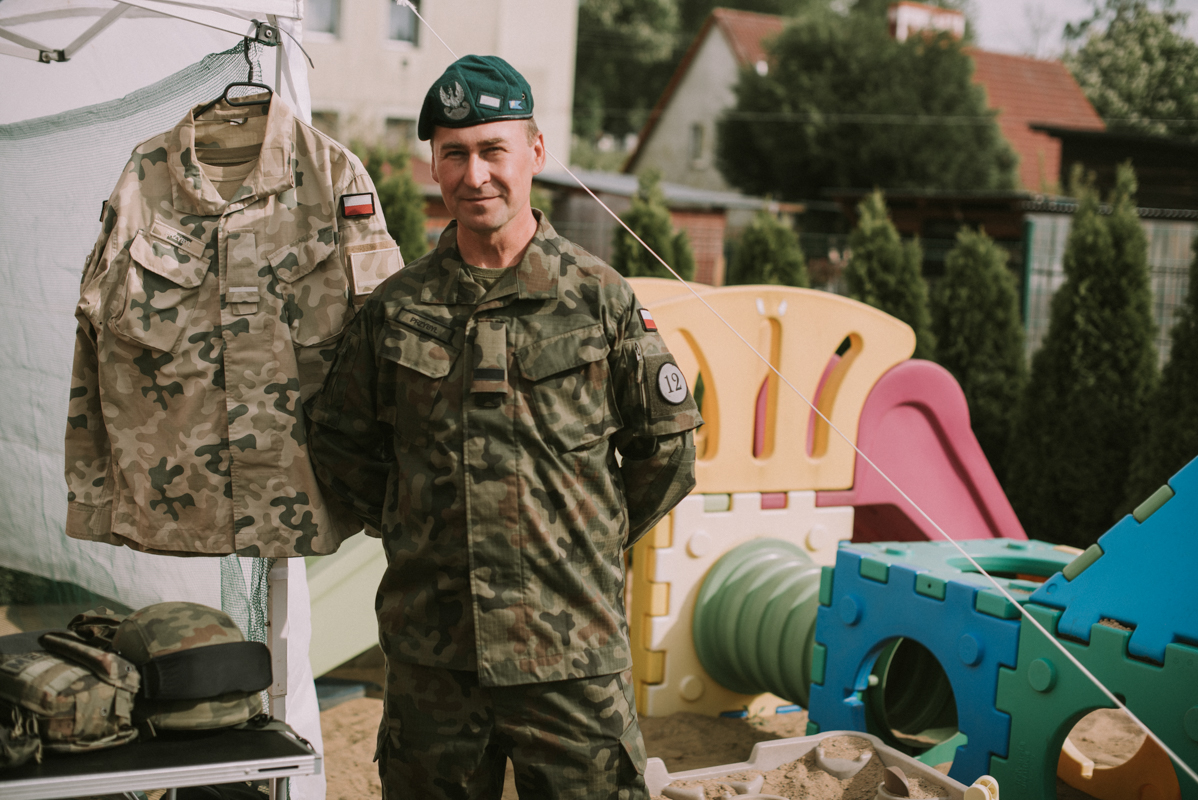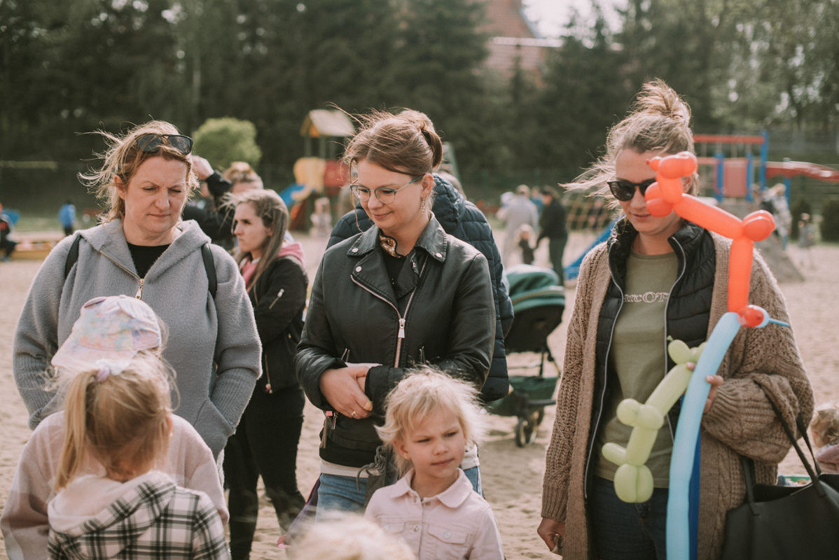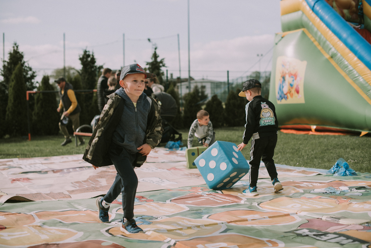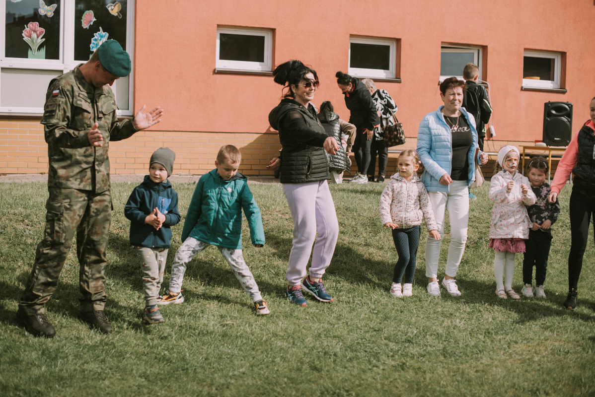 Zabawy taneczne z udziałem umundurowanego żołnierza Jednostki Wojska Polskiego w Choszcznie starszego szeregowego specjalisty Jacka Przybyła przyciągnęły sporo uczestników. Nasz gość prezentował też podstawowe wyposażenie wojskowe, przybliżając najmłodszym zawód wojskowego. Malowanie dzieciom buziek, puszczanie wielkich baniek mydlanych, mini paintball, kolorowe balony skręcane w różne postaci i kształty, wielkie plenerowe gry planszowe, zabawa z chustą animacyjną i tunelem tkaninowym to atrakcje dostępne dzięki naszym drogim rodzicom.