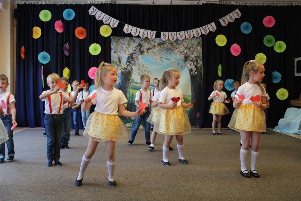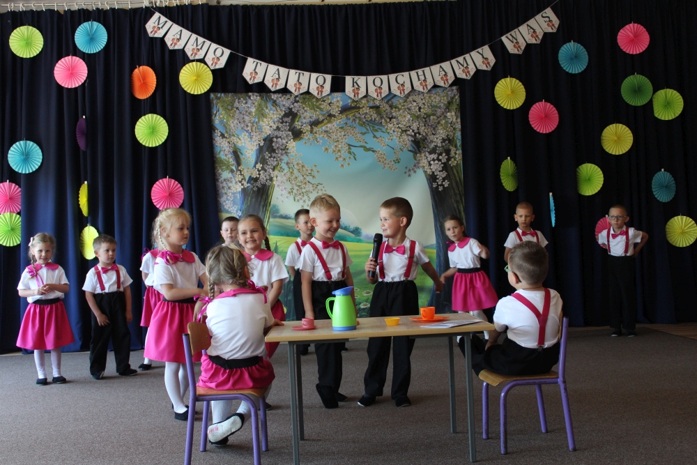Z okazji Święta Mamy i Taty dzieci z grupy „Żabki”, „Krasnoludki”, „Misie” i „ Biedronki” przygotowały dla swoich rodziców program artystyczny oraz upominki. Wierszykami, piosenkami, tańcami i życzeniami z serca płynącymi dzieci podziękowały rodzicom za miłość, która zostaje jako światło na całe życie. Występom tym towarzyszyło wiele emocji , wzruszeń i radości okazywanych nie tylko przez dzieci, lecz także przez rodziców.