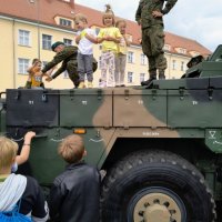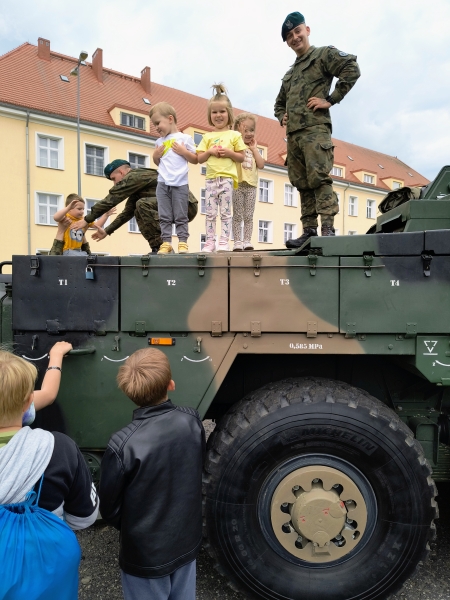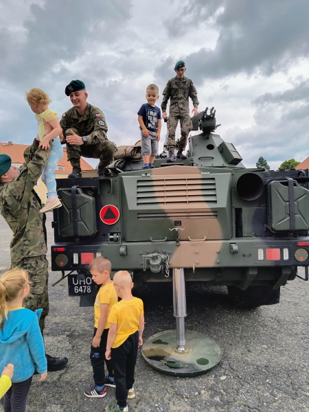 Zachwycaliśmy się defiladą pododdziałów Dywizjonu z towarzyszeniem orkiestry wojskowej. Dzieci wzięły aktywny udział w pokazie sprzętu wojskowego, co zostało uwidocznione na zdjęciach. Mogliśmy też skorzystać z poczęstunku watą cukrową oraz popcornem.