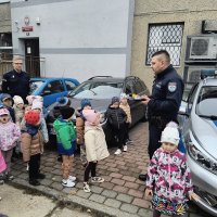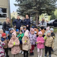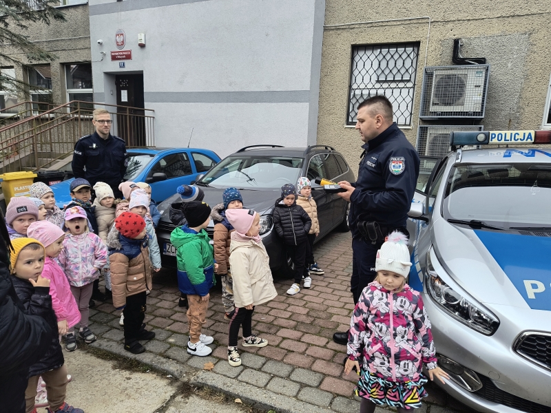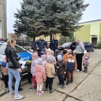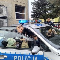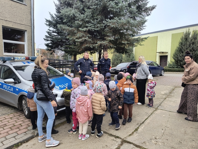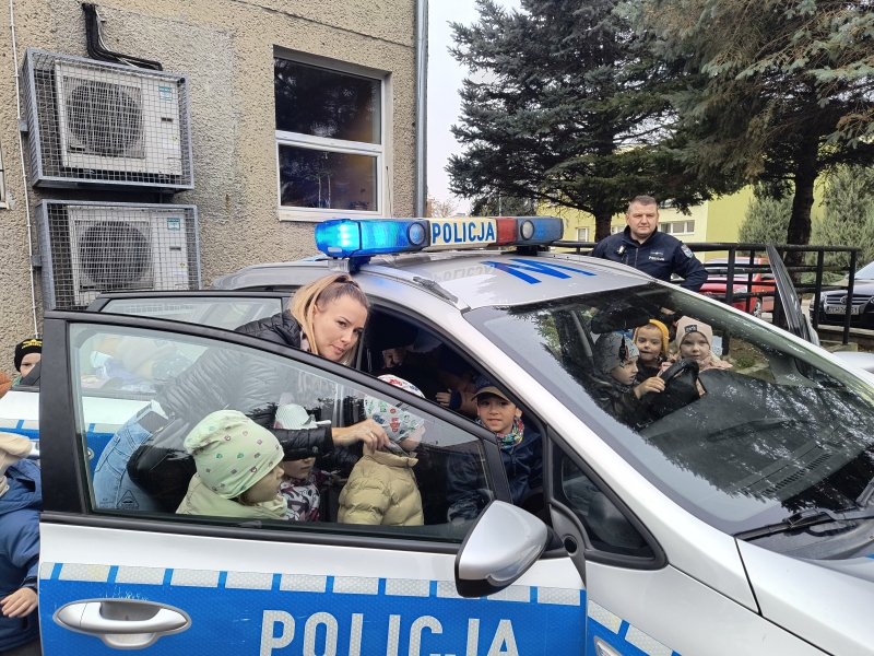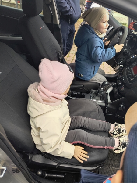 Na zakończenie spotkania, przed budynkiem czekała na dzieci niespodzianka tj. zwiedzanie radiowozu policyjnego z możliwością włączenia syren świetlnych i dźwiękowych, co okazało się największą atrakcją. Przedszkolaki ubrane w opaski odblaskowe bezpiecznie wróciły do przedszkola.