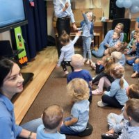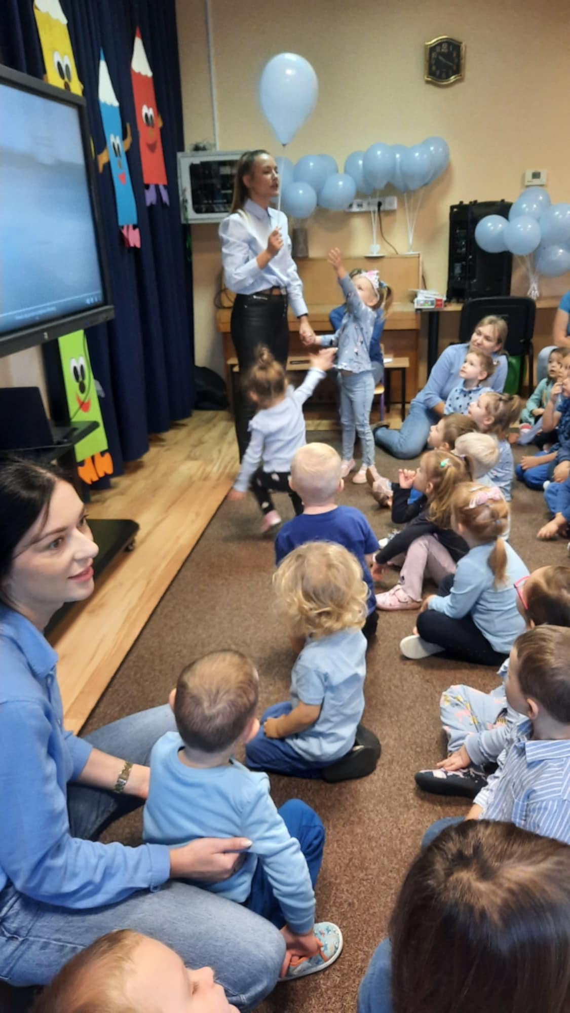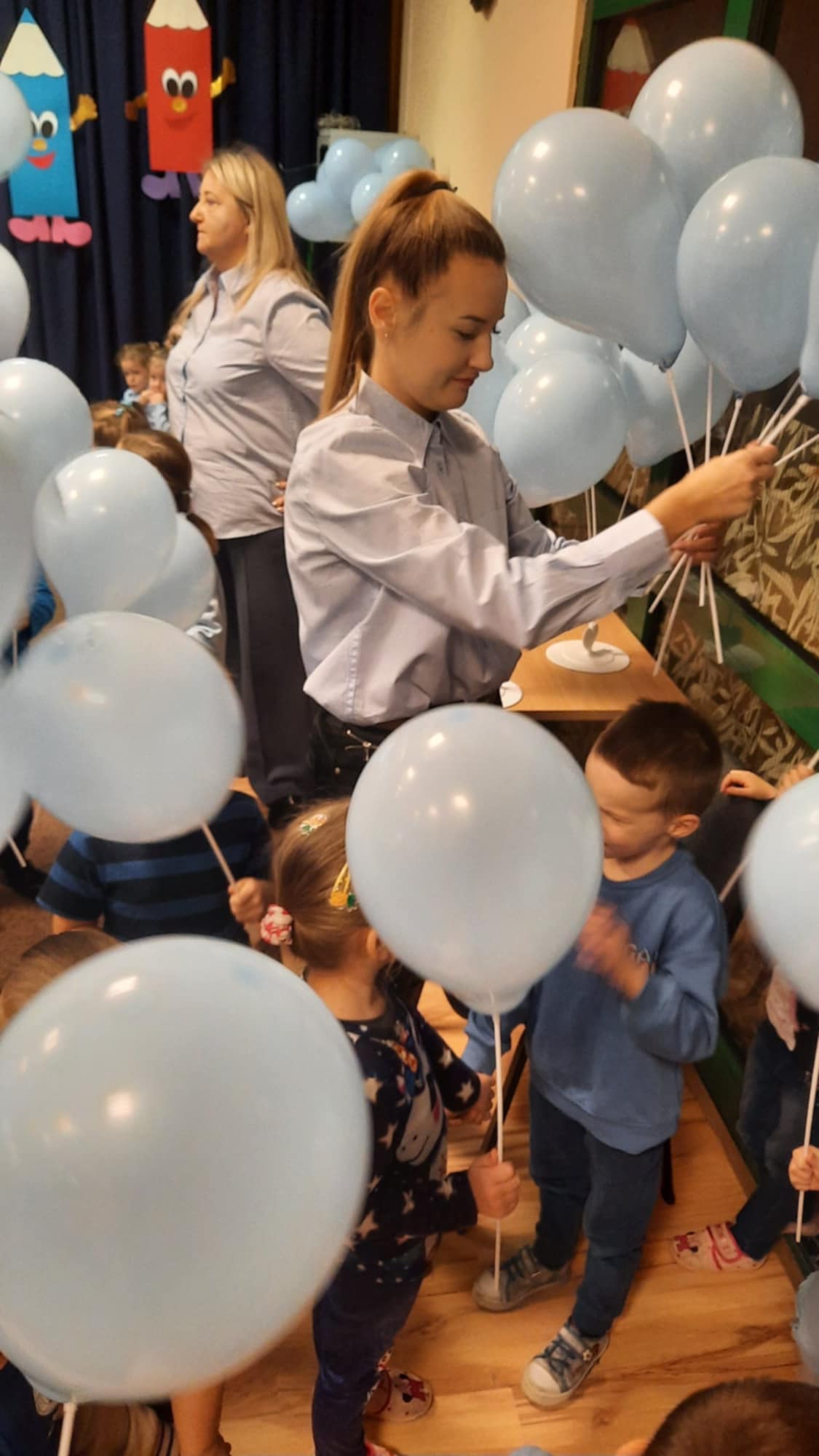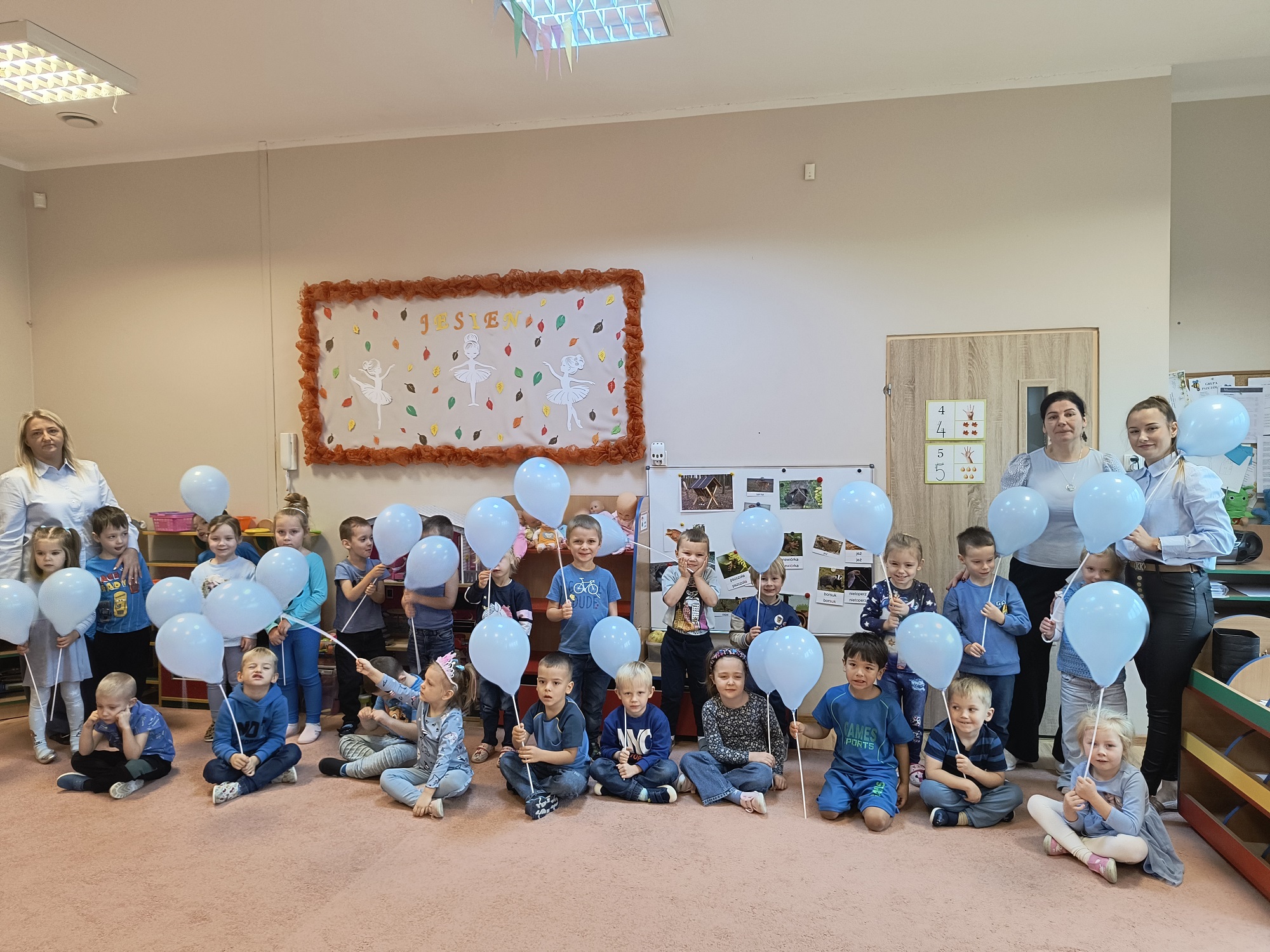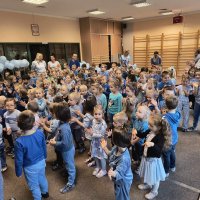 20.11.2024 r. dzieci z przedszkola wraz z opiekunami, ubrani na niebiesko, wzięli udział w uroczystym spotkaniu z okazji Międzynarodowego Dnia Praw Dziecka, na którym mieli możliwość poznać wszystkie prawa oglądając film edukacyjny pt.:" Dzień Praw Dziecka". Wspólnie odśpiewaliśmy piosenkę "Dziecka Prawa" – Mała Orkiestra Dni Naszych. W ten szczególny dzień każde dziecko w prezencie dostało niebieski balon.