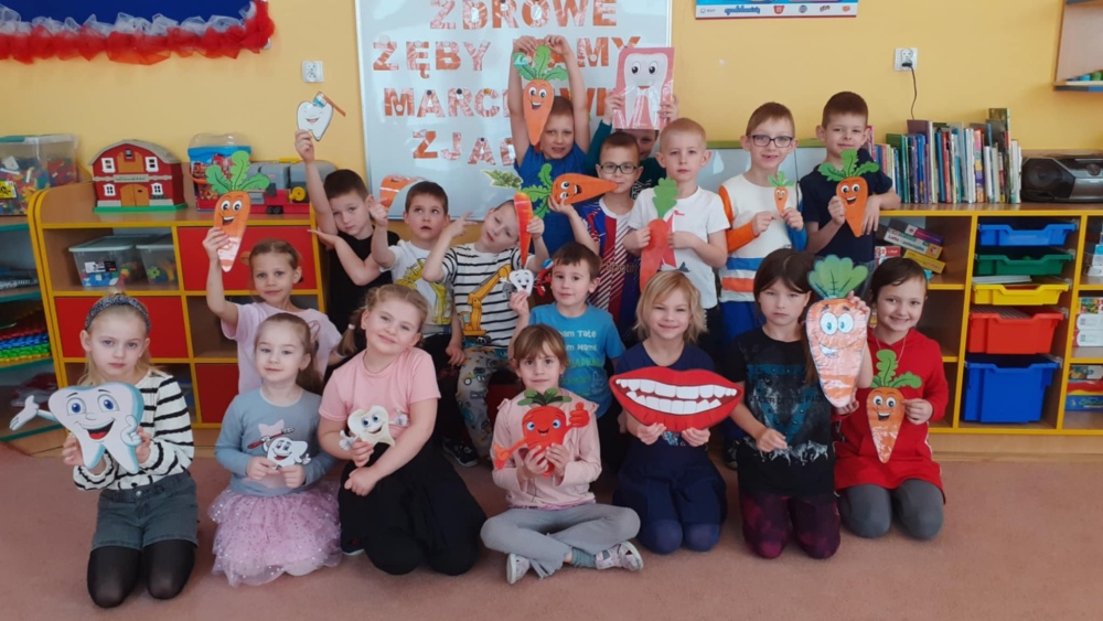 Jak co roku nasze przedszkolaki aktywnie uczestniczyły w programie "Zdrowe zęby mamy- marchewkę zajadamy", którego celem było kształtowanie właściwych nawyków higienicznych i dietetycznych w zakresie zdrowia jamy ustnej.