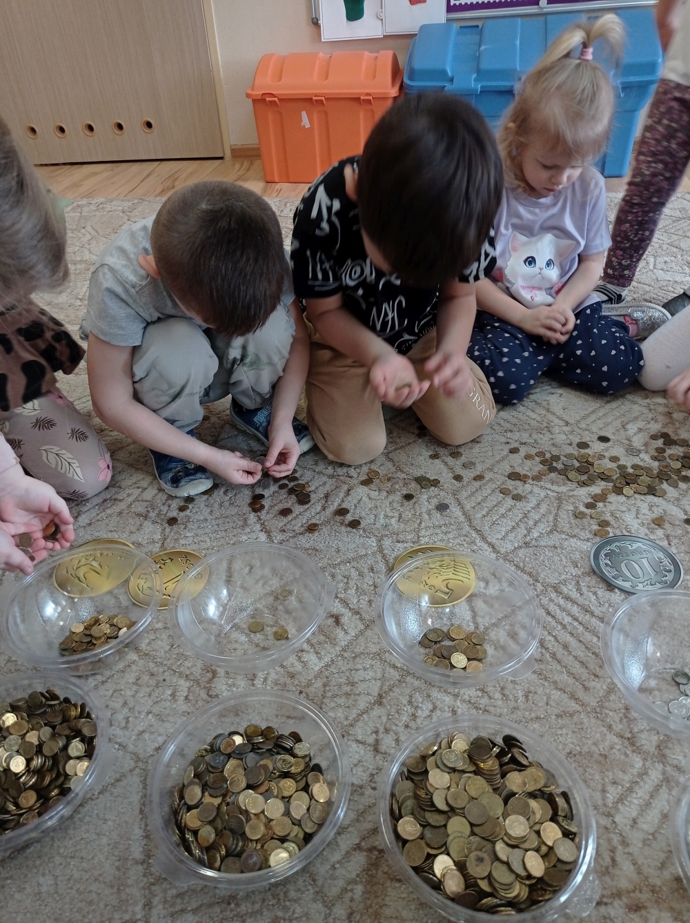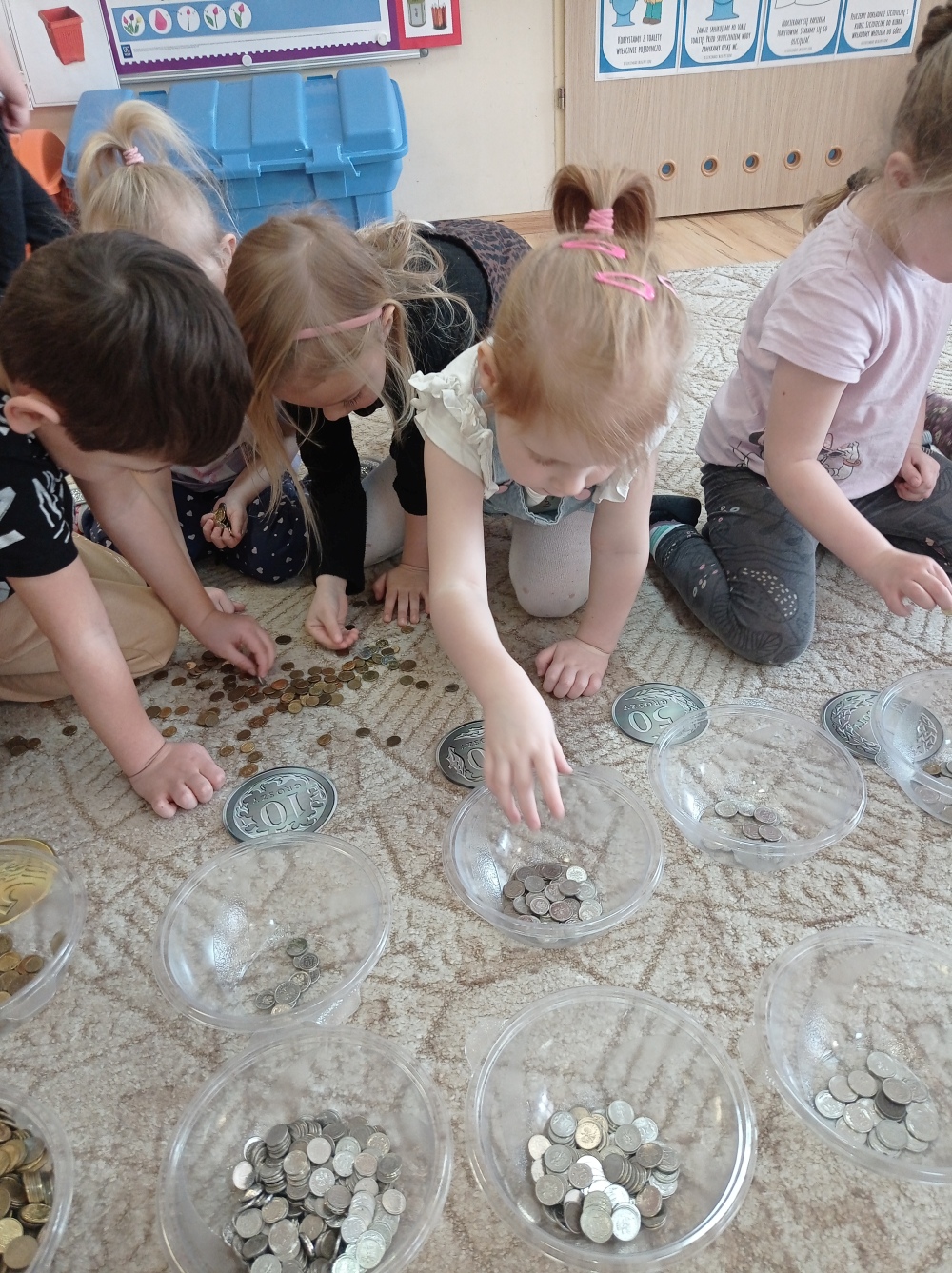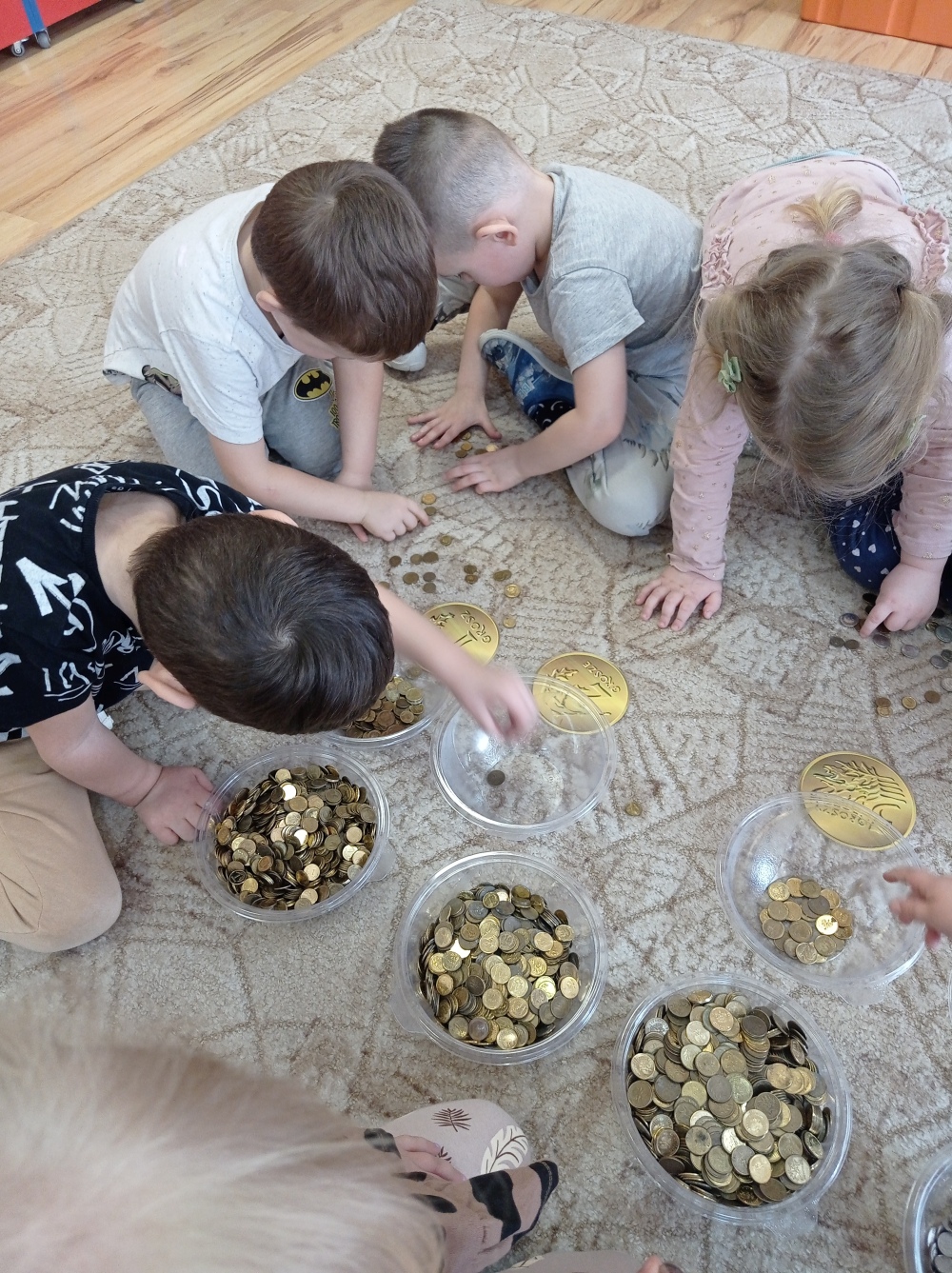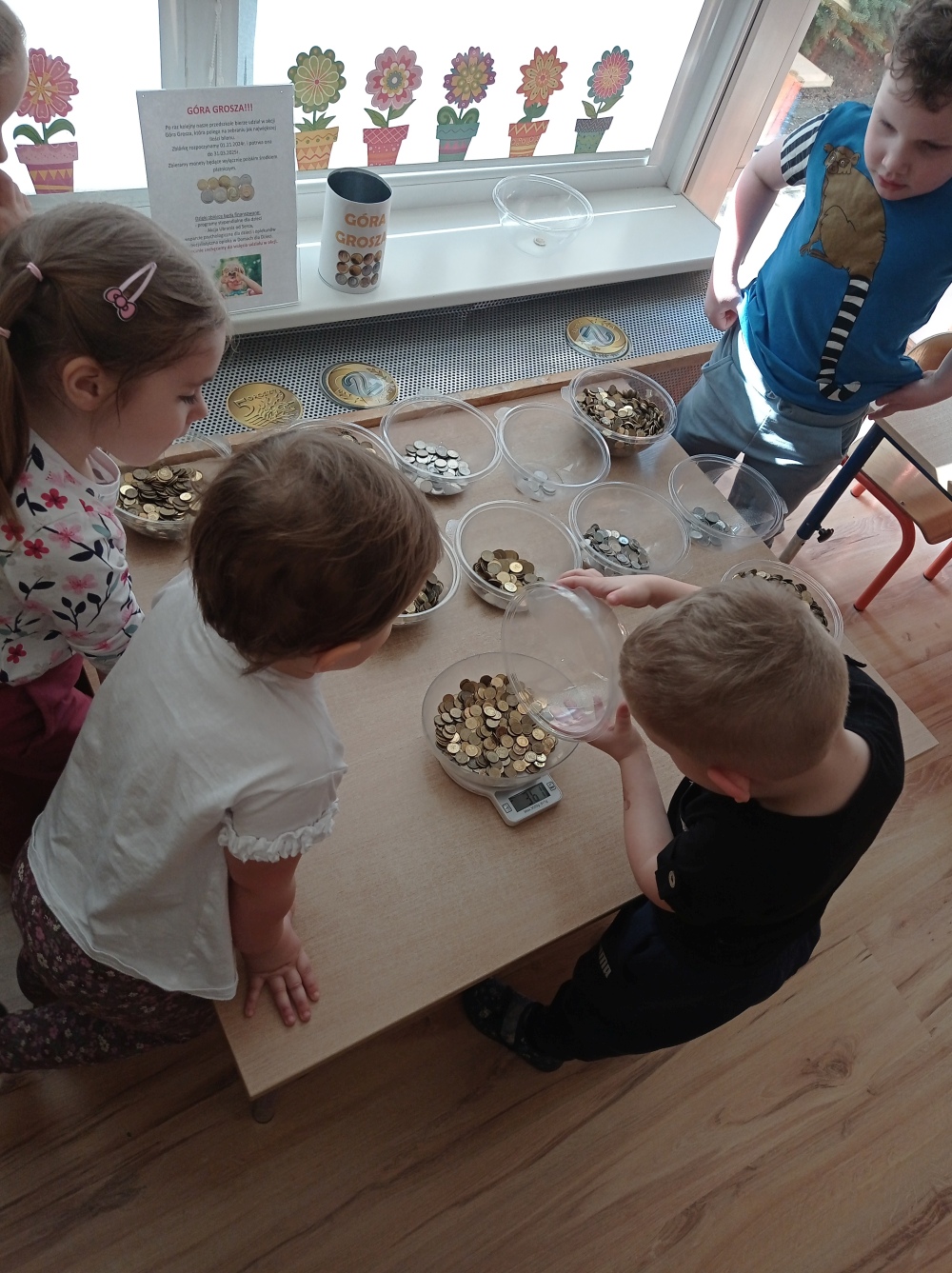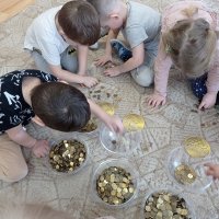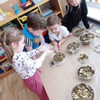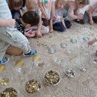 Następnie dzieci z grupy „Misie” wzięły czynny udział w segregowaniu, ważeniu i pakowaniu monet. Dzięki temu poszerzyły swoją wiedzę i zdobyły nowe umiejętności matematyczne oraz wzmocniły wrażliwość na potrzeby innych ludzi. Zebrane pieniądze będą wsparciem dla dzieci i młodzieży w całej Polsce. Towarzystwo Nasz Dom co roku finansuje pomoc rzeczową, wsparcie psychologiczne dla dzieci i opiekunów, programy stypendialne oraz specjalistyczną opiekę całodobową w Domach dla Dzieci. Dziękujemy za udział w akcji.
