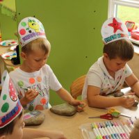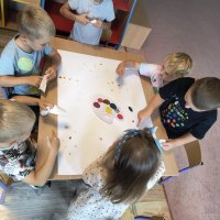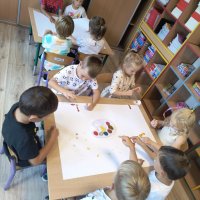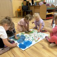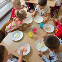 W części plastycznej przedszkolaki tworzyły własne dzieła sztuki z kropek- malowały, wyklejały, stemplowały .