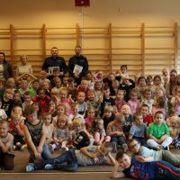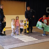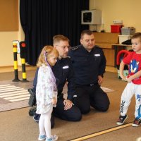 Na początku spotkania policjanci opowiedzieli w kilku zdaniach przedszkolakom o swojej pracy. Dzieci z dużym zainteresowaniem słuchały opowieści, chętnie zadawały pytania i dzieliły się własnymi doświadczeniami.