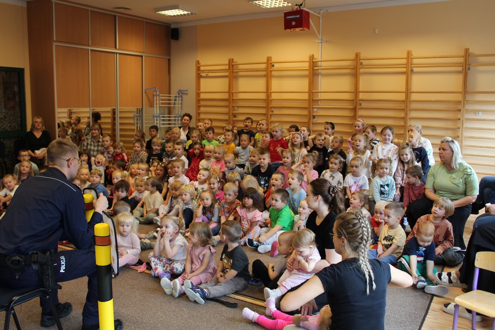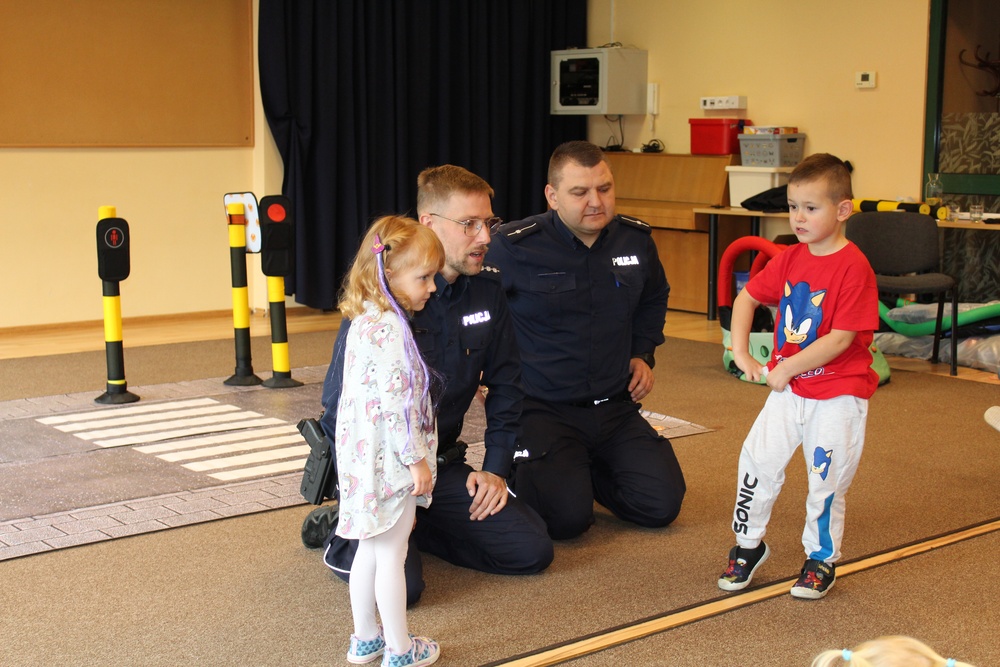 Spotkanie było nie tylko pouczające, ale też pełne uśmiechu i dobrej zabawy. Dzięki takim wizytom dzieci uczą się, że policjant to osoba, do której zawsze można zwrócić się o pomoc.