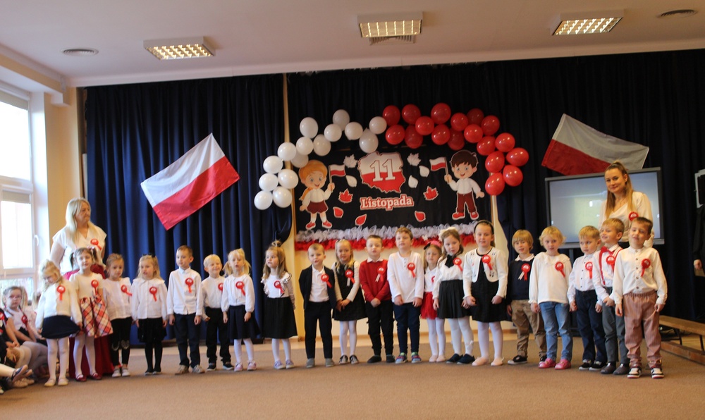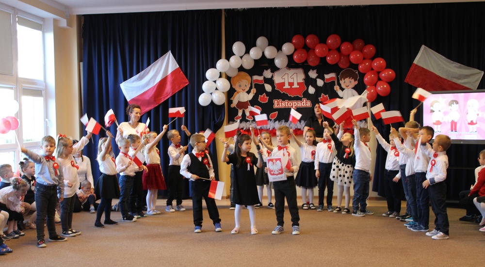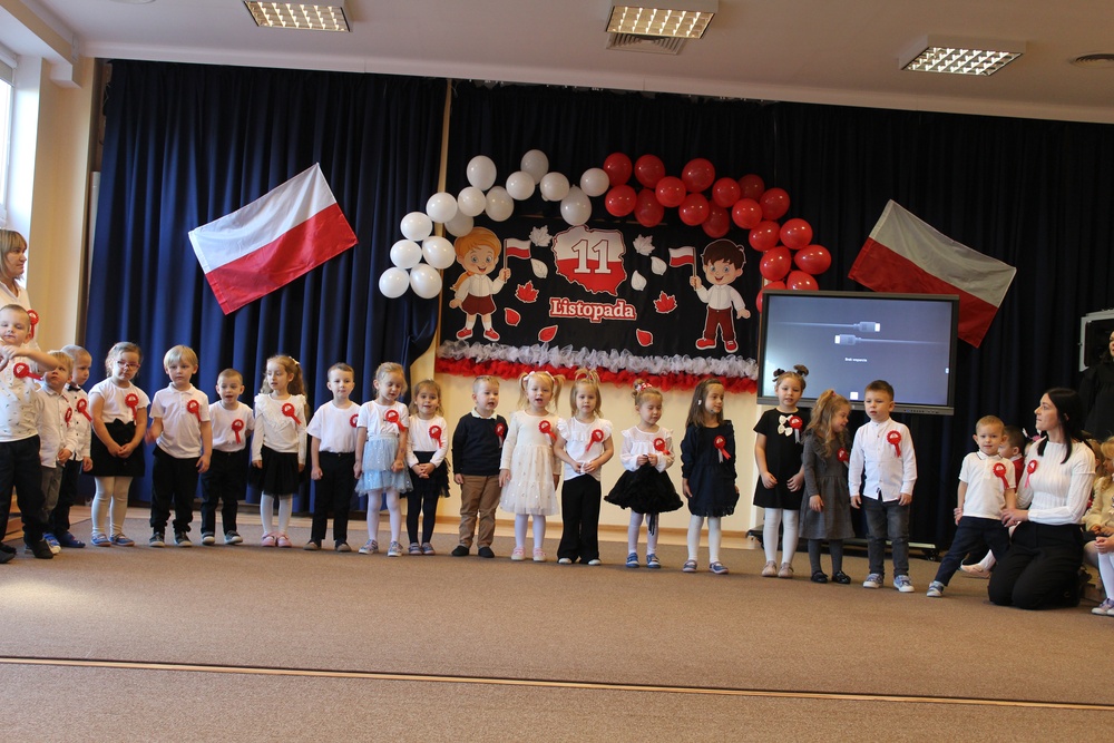 Całe wydarzenie przebiegło w podniosłej, ale radosnej atmosferze. Dzieci z zaangażowaniem uczestniczyły w obchodach, a poprzez wspólne świętowanie uczą się, jak ważne jest pielęgnowanie pamięci o historii naszego kraju i miłość do ojczyzny.