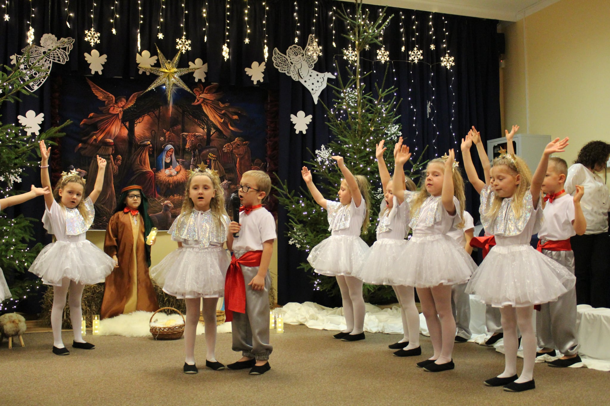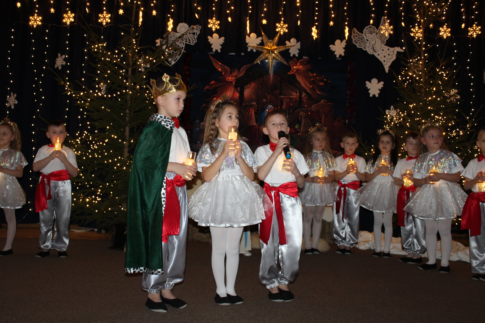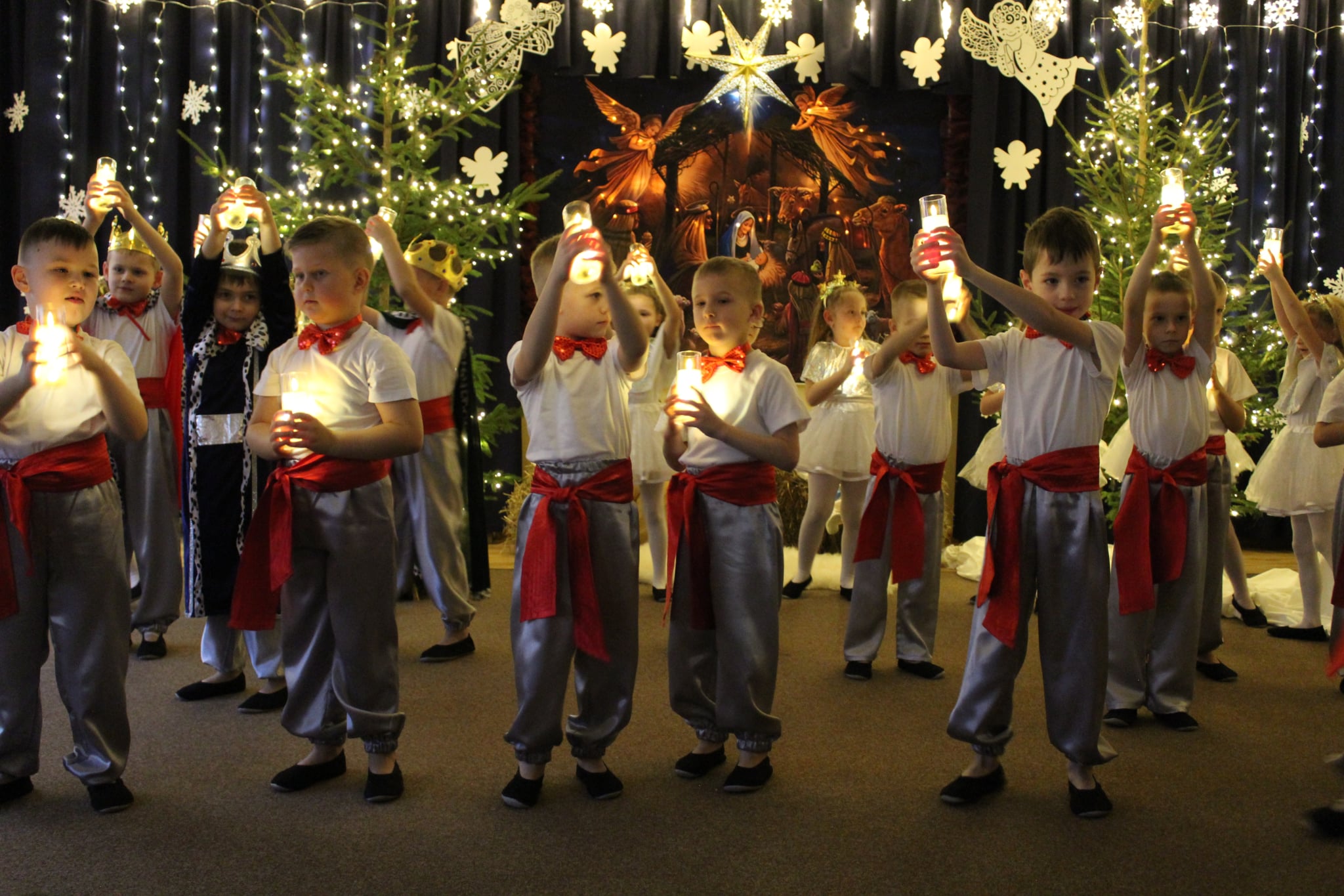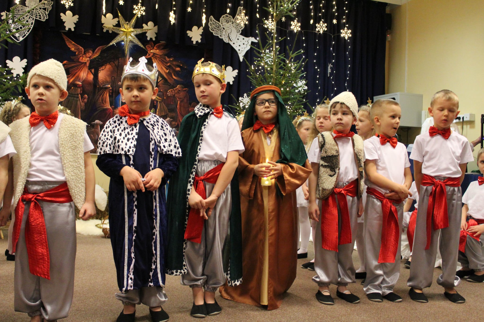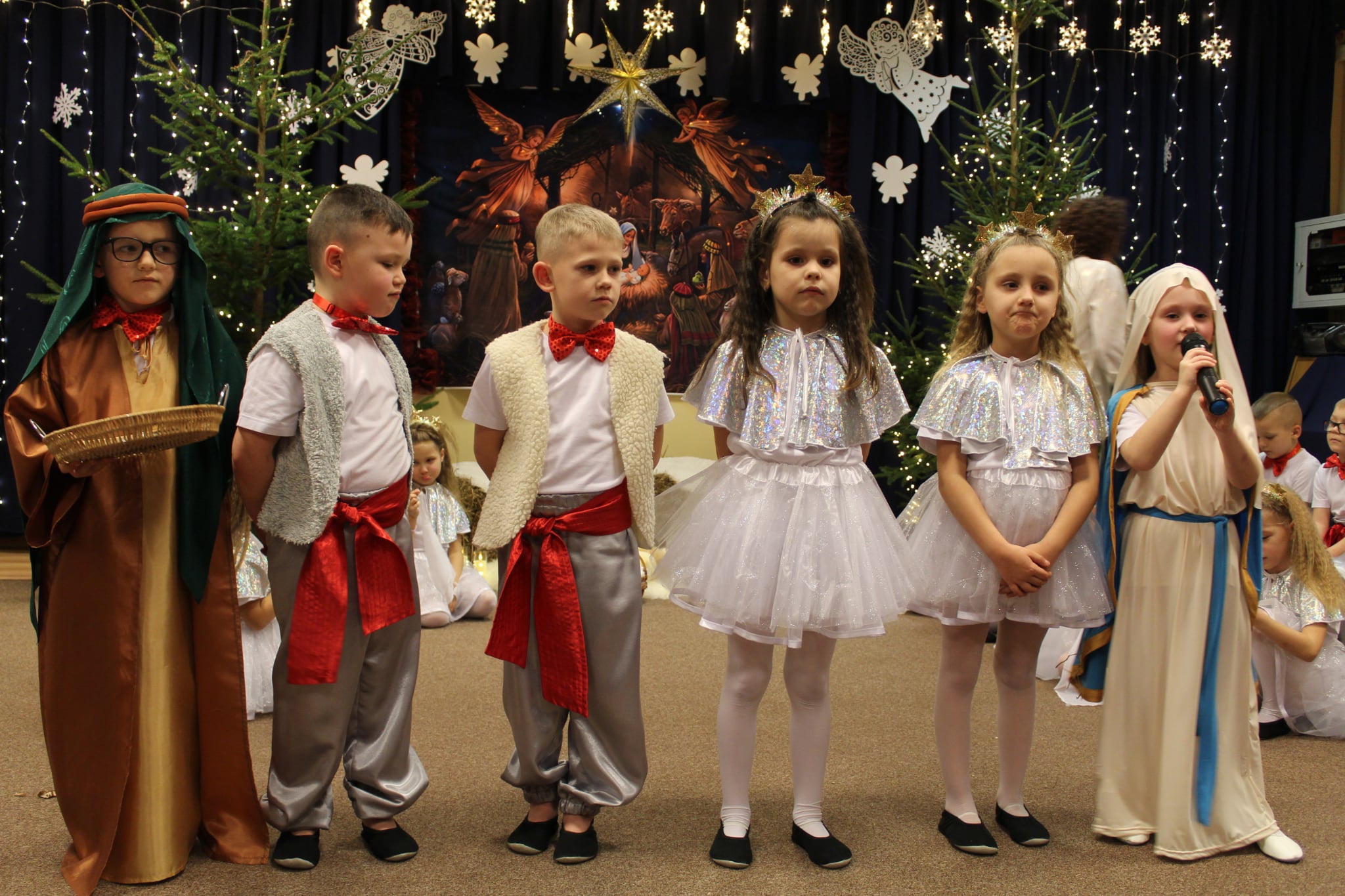 Mali artyści z wielkim zaangażowaniem wcielili się w role: Maryi, Józefa, aniołków, pasterzy oraz Trzech Króli. Zaprezentowali piękne wierszyki, kolędy, pastorałki oraz tańce, które wzruszyły i zachwyciły zgromadzonych gości.