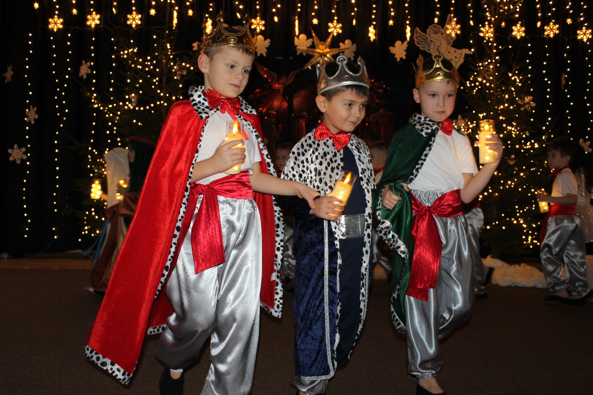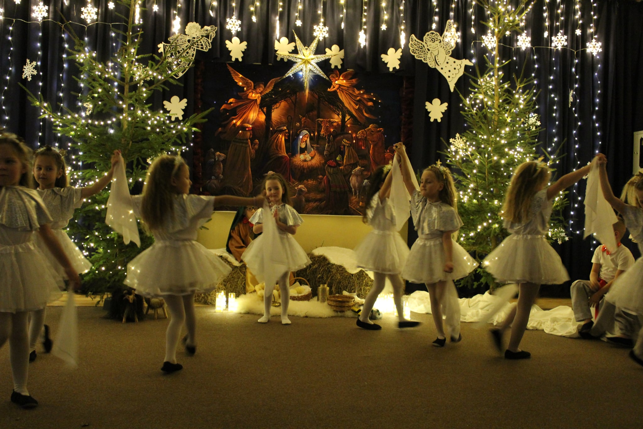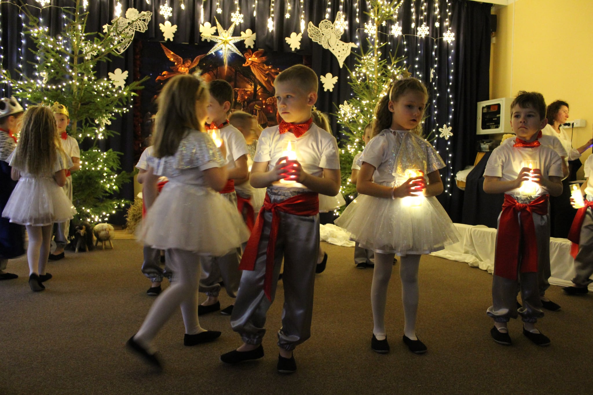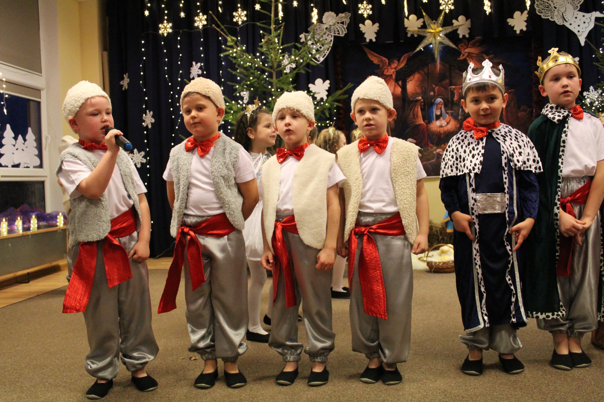 Mali artyści z wielkim zaangażowaniem wcielili się w role: Maryi, Józefa, aniołków, pasterzy oraz Trzech Króli. Zaprezentowali piękne wierszyki, kolędy, pastorałki oraz tańce, które wzruszyły i zachwyciły zgromadzonych gości.