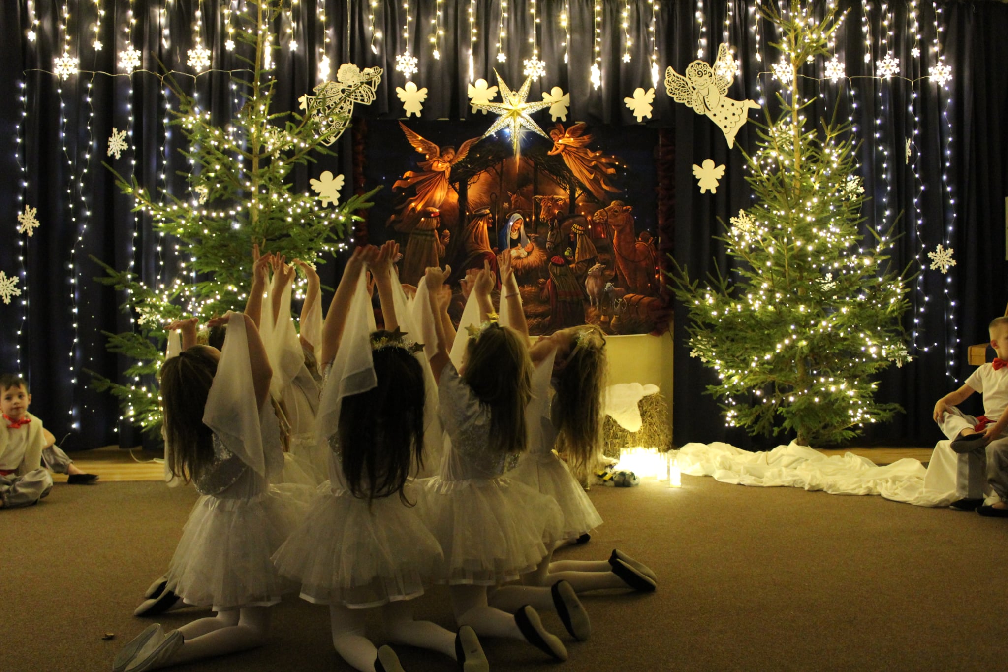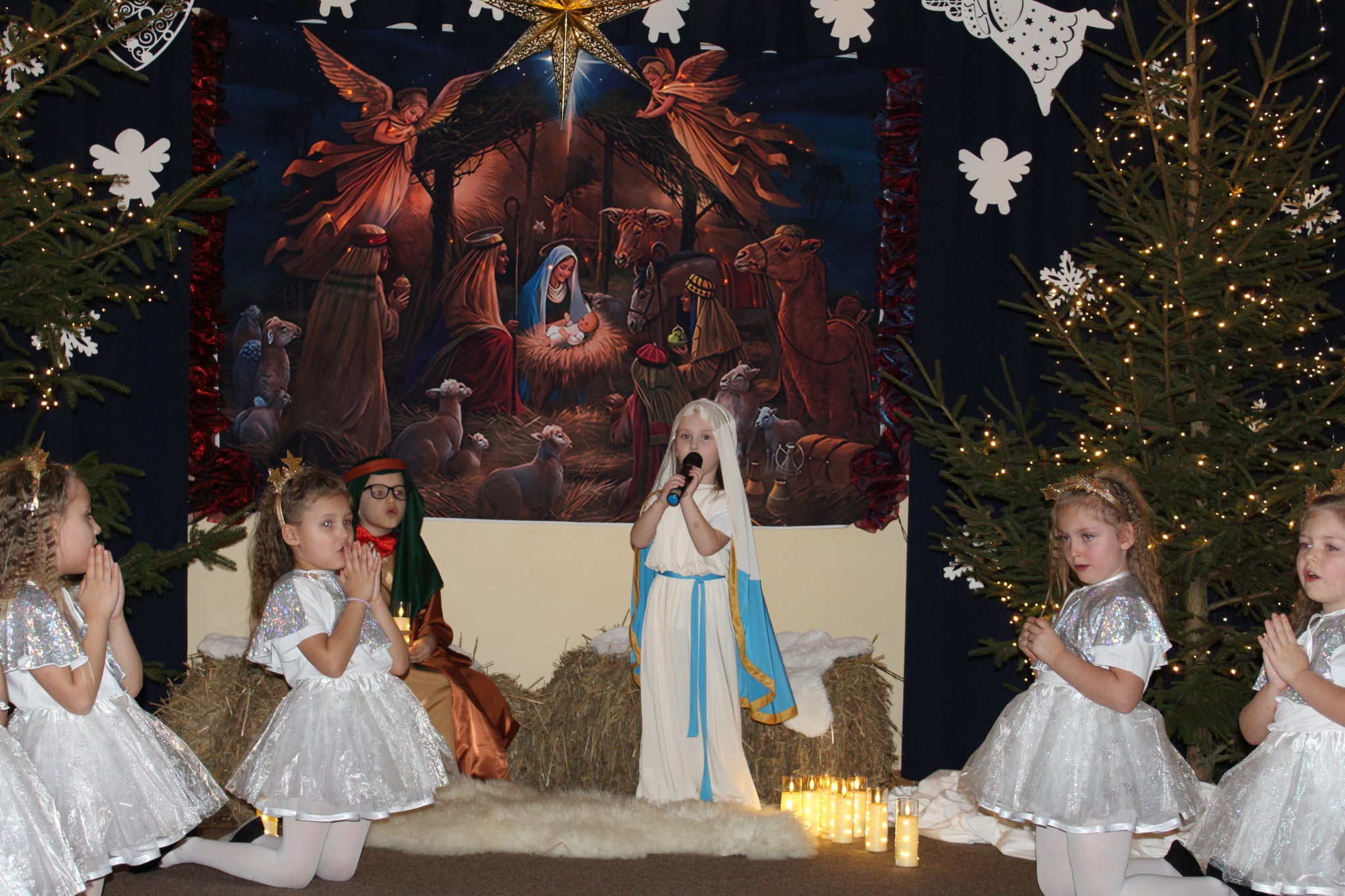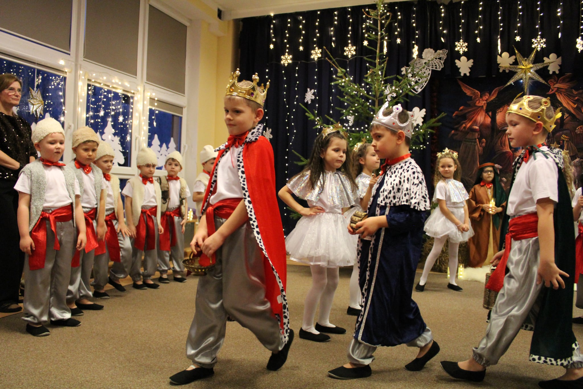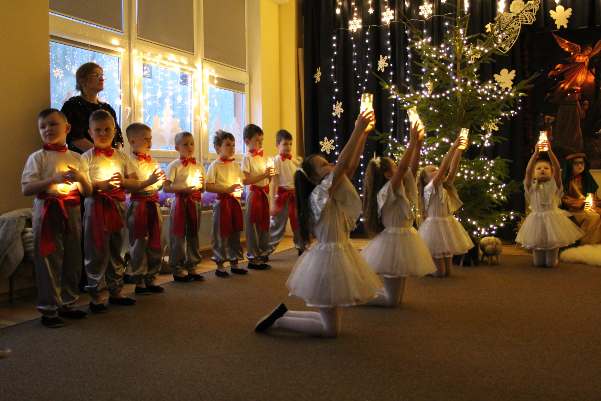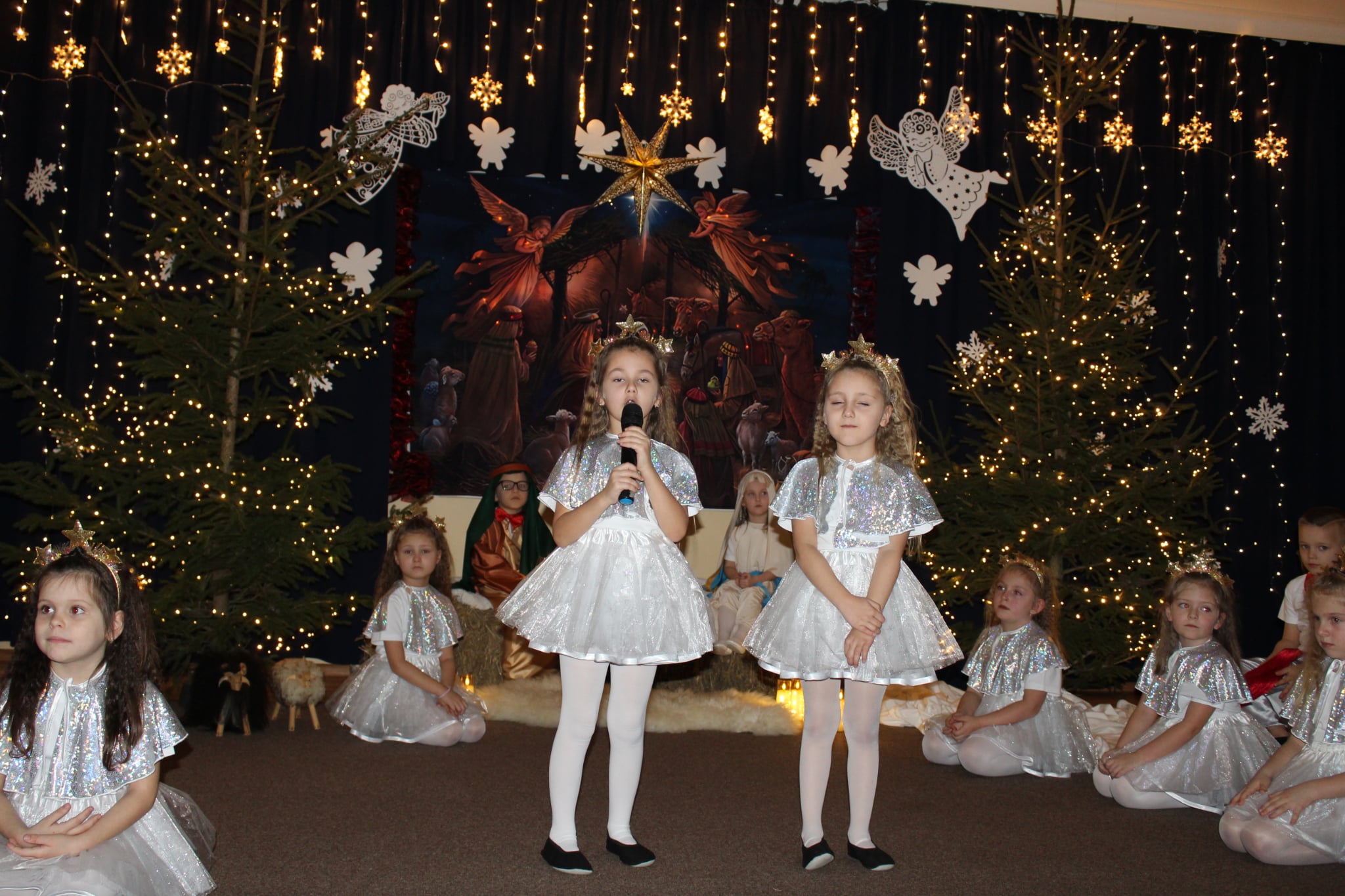 Mali artyści z wielkim zaangażowaniem wcielili się w role: Maryi, Józefa, aniołków, pasterzy oraz Trzech Króli. Zaprezentowali piękne wierszyki, kolędy, pastorałki oraz tańce, które wzruszyły i zachwyciły zgromadzonych gości.