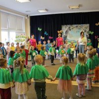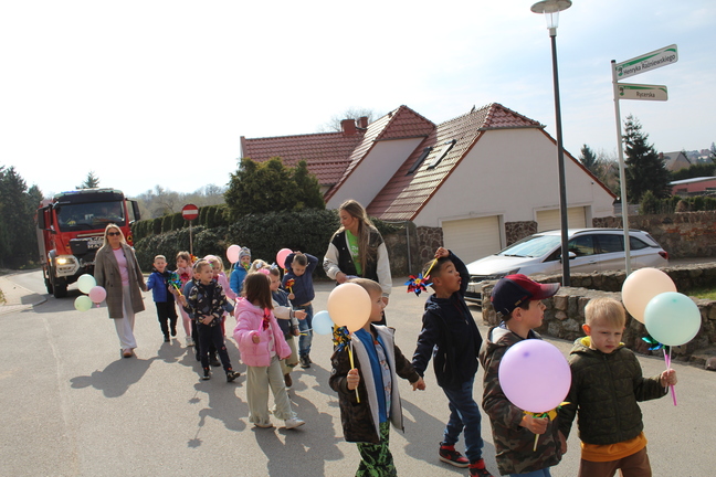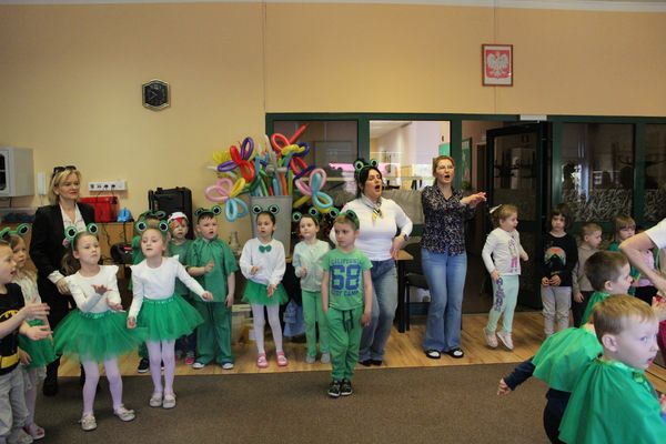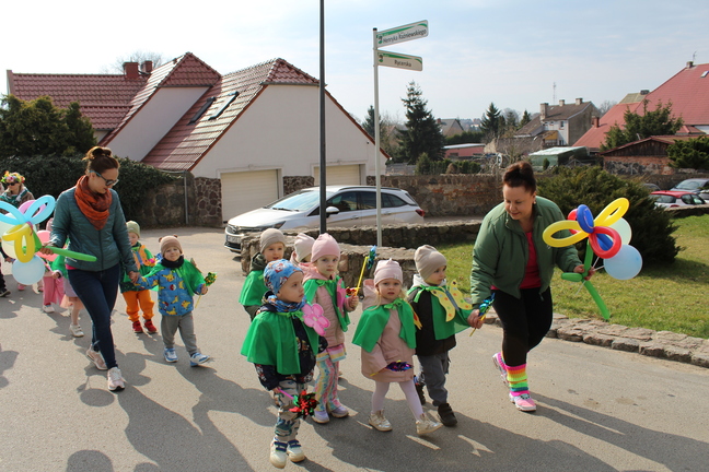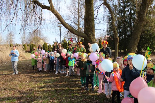 Pierwszy dzień wiosny w przedszkolu był pełen radości, kolorów i wspólnej zabawy. Uroczystości rozpoczęły się od spotkania wszystkich dzieci w sali gimnastycznej, gdzie panowała wesoła atmosfera i słychać było śmiech oraz muzykę. Następnie odbył się kolorowy korowód, prowadzony przez straż, który wzbudził ogromne zainteresowanie i zachwyt najmłodszych.