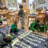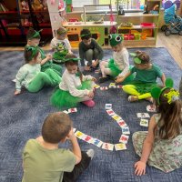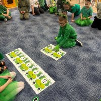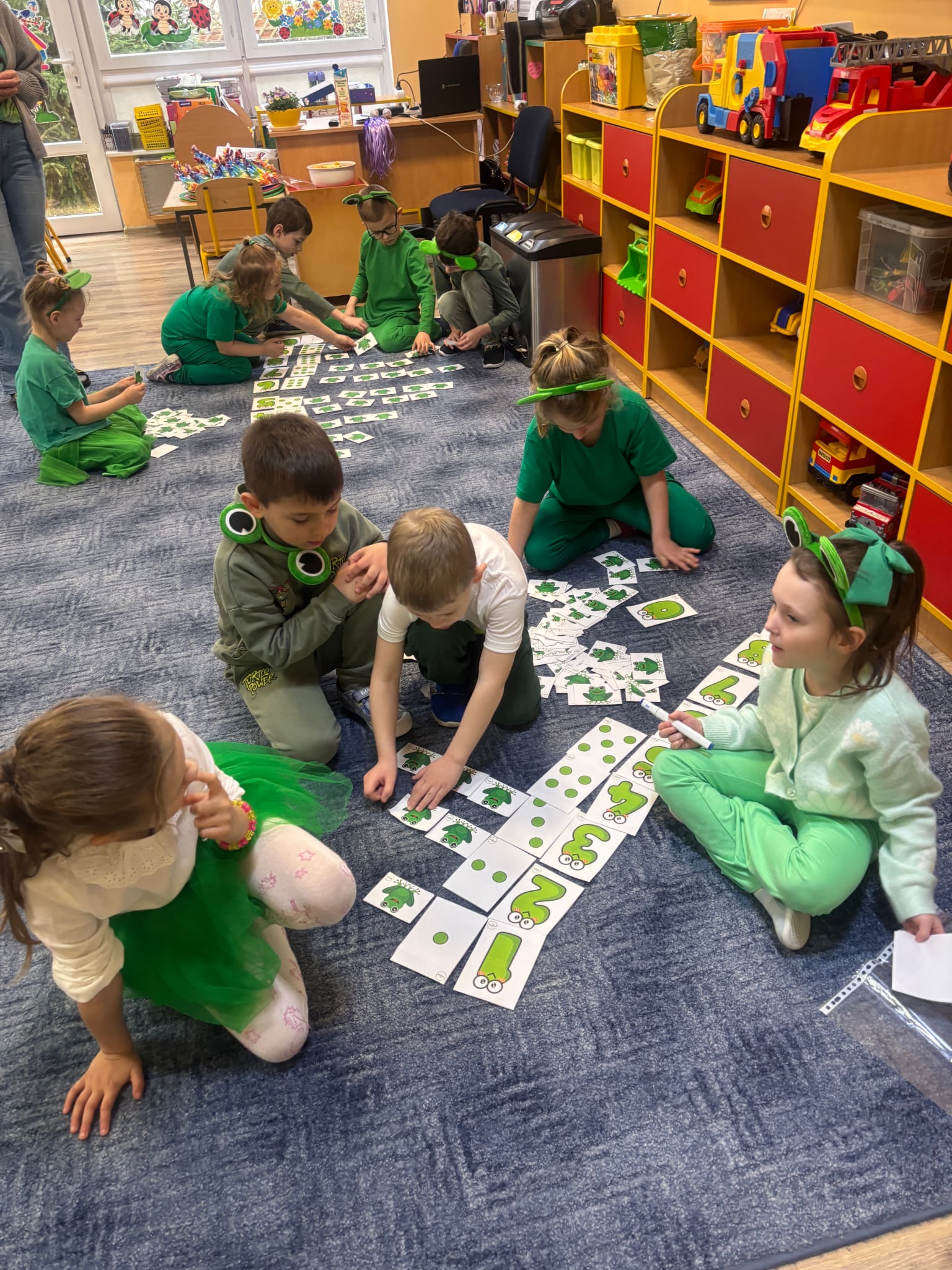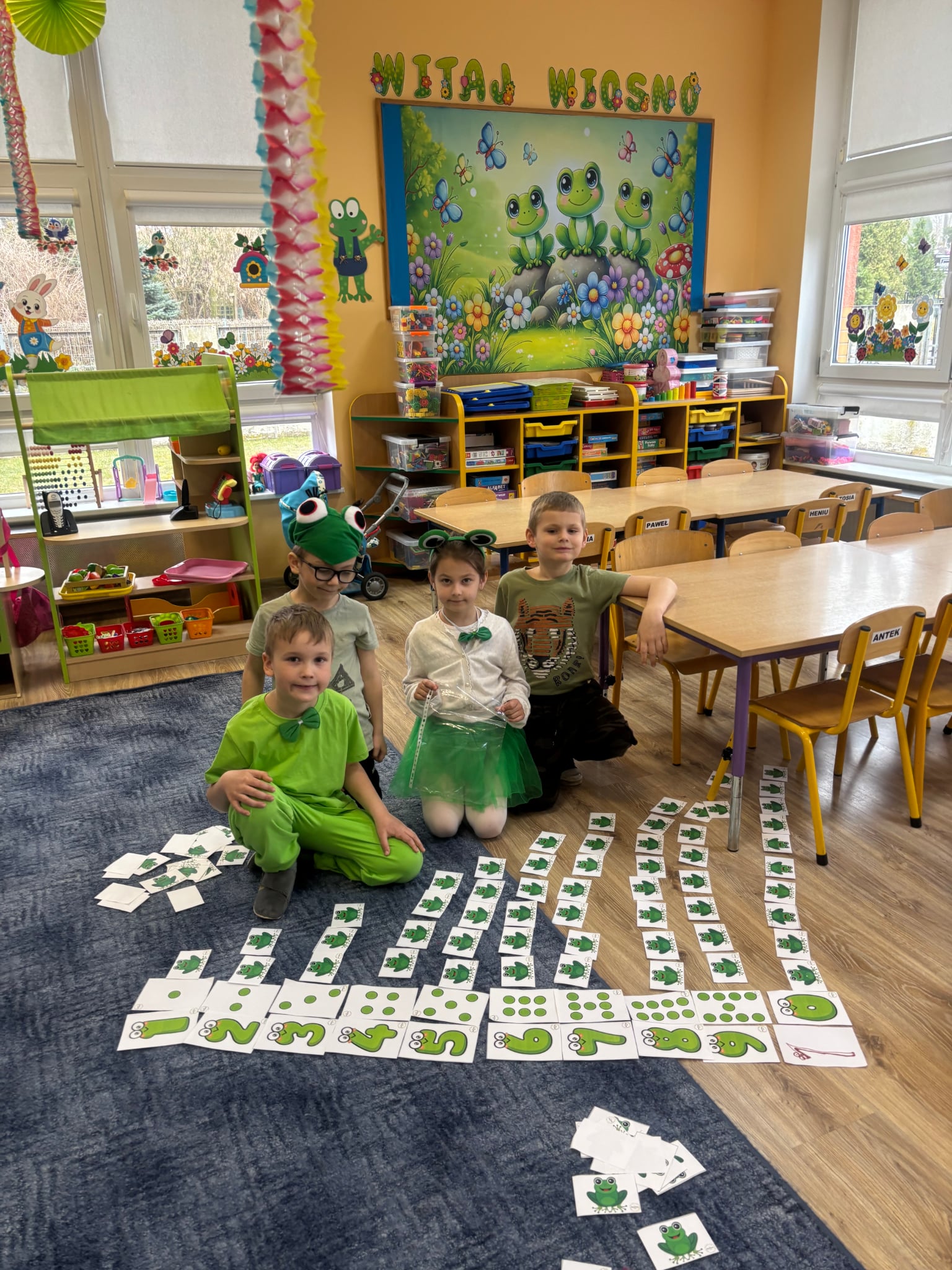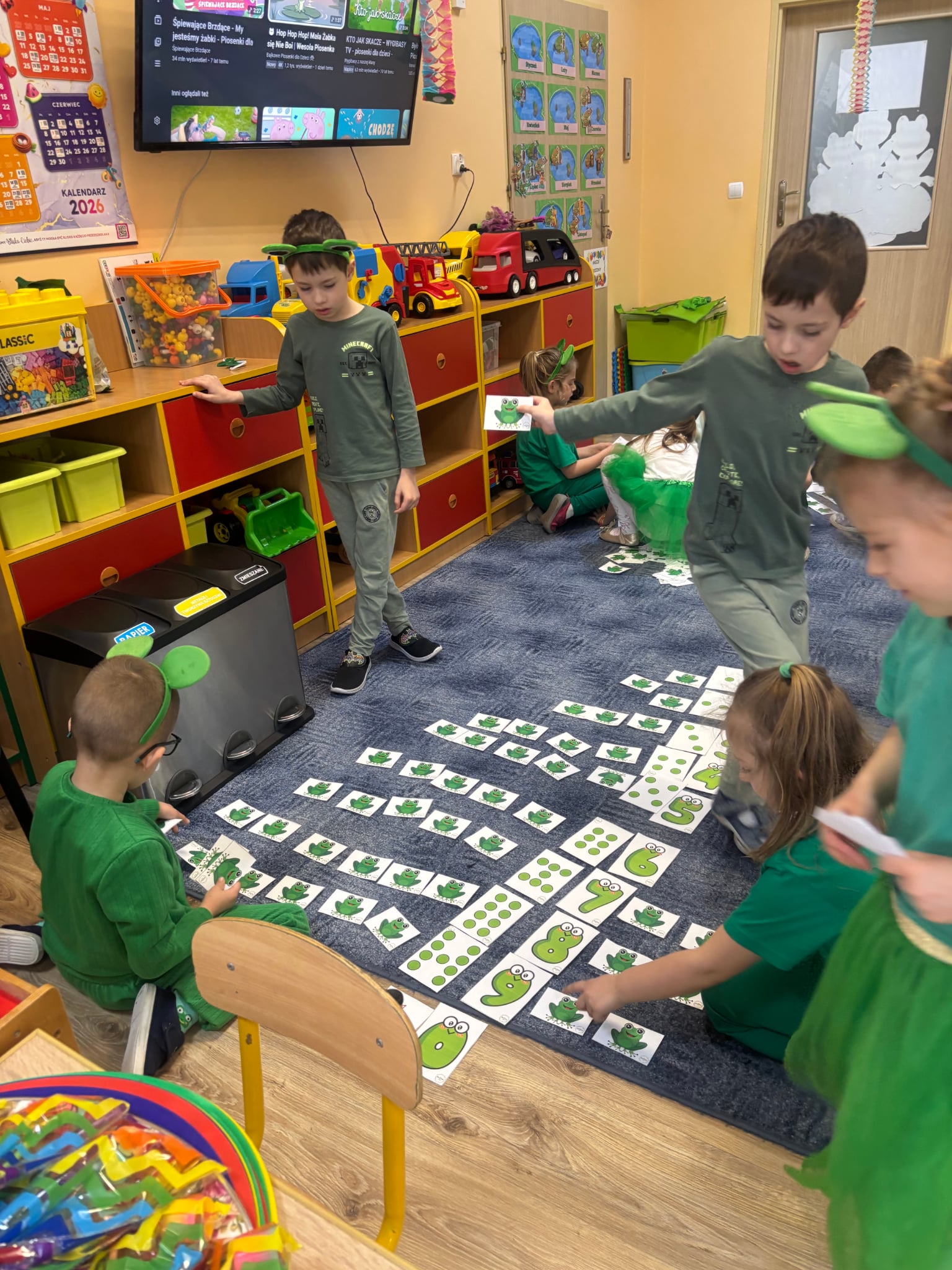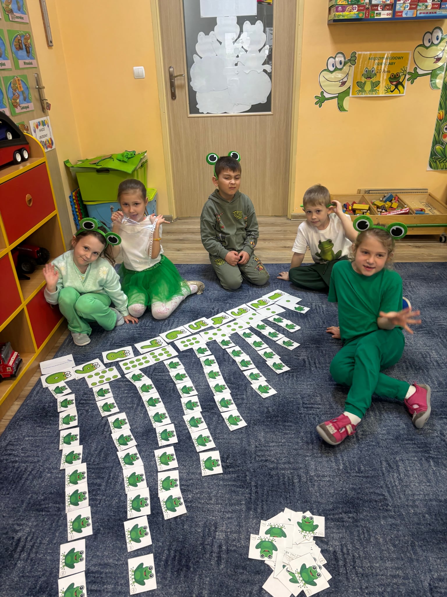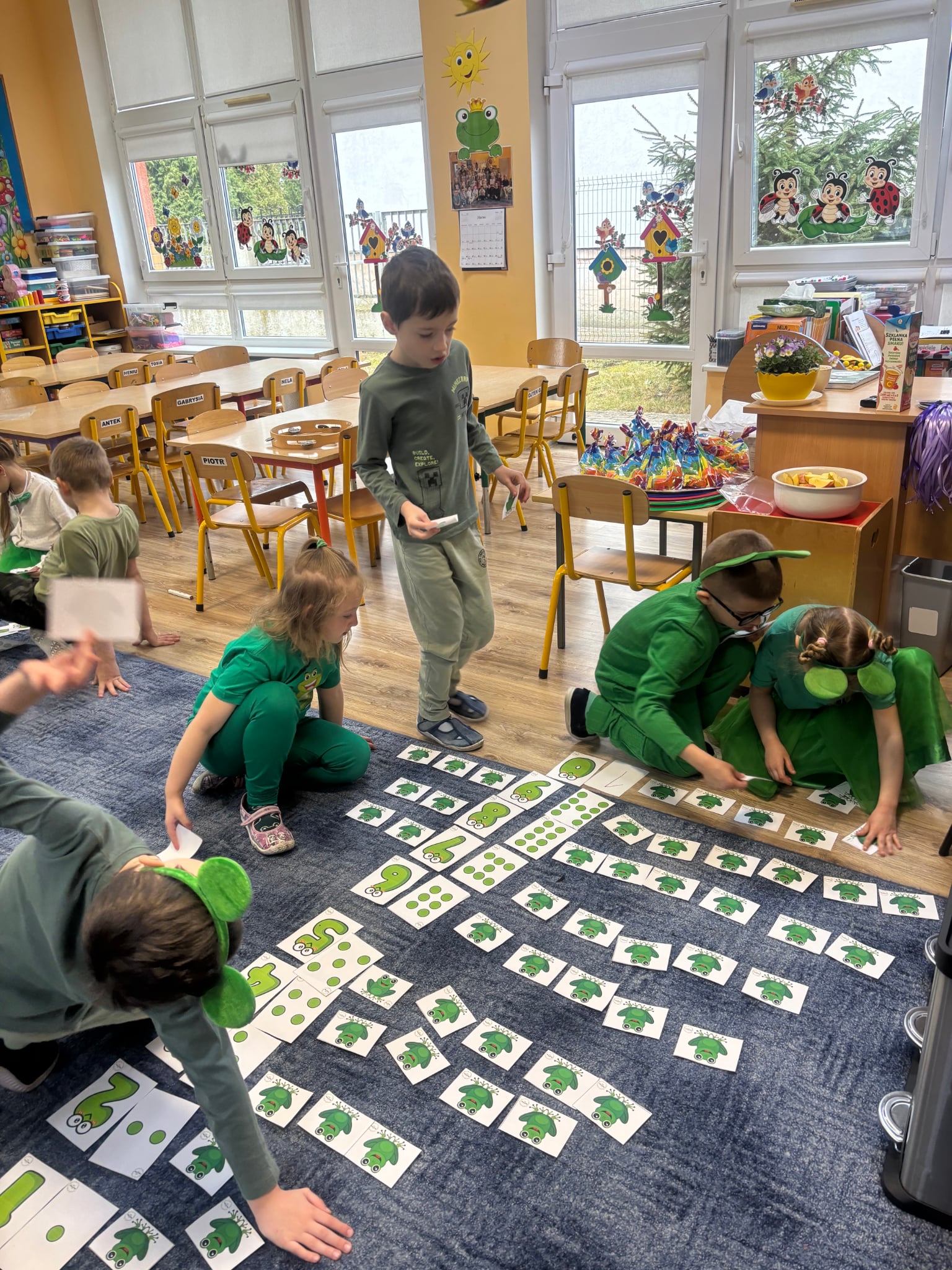 W trakcie zajęć odbyły się również różnorodne zabawy matematyczne z wykorzystaniem motywu żabek. Dzieci przeliczały żabki, porównywały ich liczebność, układały zbiory oraz rozwiązywały proste zadania matematyczne. Ćwiczenia te rozwijały umiejętności liczenia, logicznego myślenia oraz spostrzegawczości.