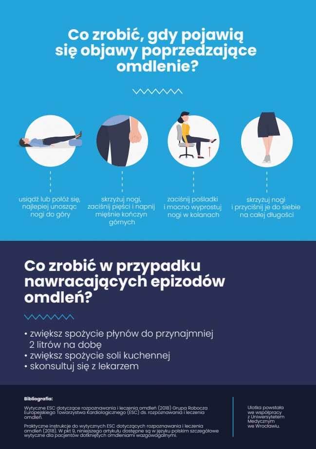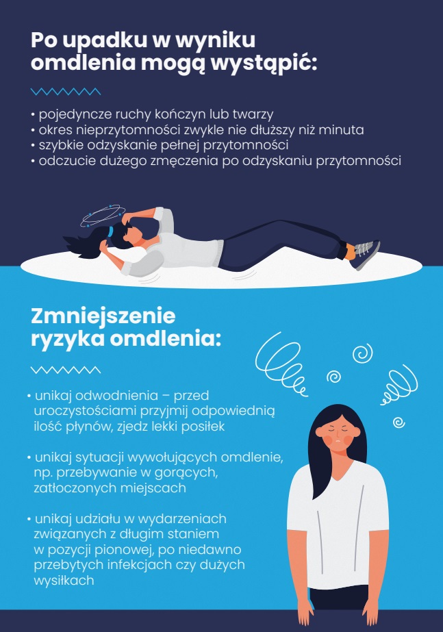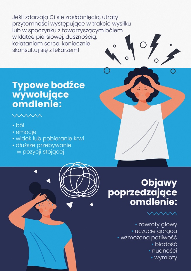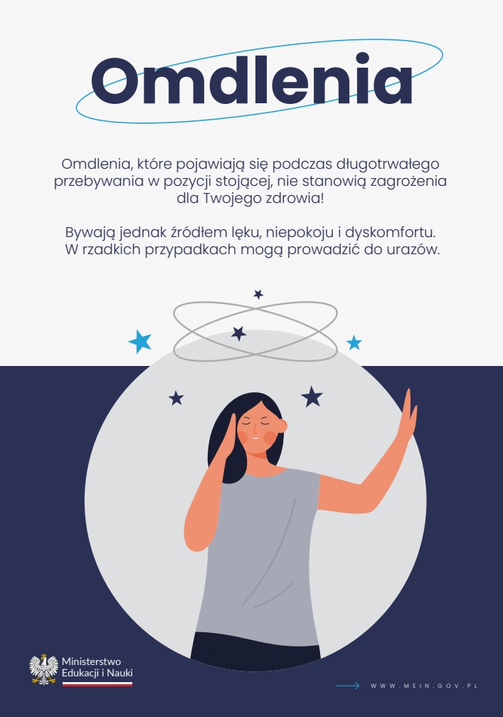 Szanowni Państwo, Drodzy Rodzice, Uczniowie i Nauczyciele w załączeniu przekazujemy ulotkę przygotowaną przez studentów z Uniwersytetu Medycznego im. Piastów Śląskich we Wrocławiu we współpracy z Ministerstwem Edukacji i Nauki. Materiał zawiera najważniejsze informacje dotyczące m.in. przyczyn omdleń, ich charakterystycznych objawów czy sposobów na zmniejszenie ryzyka omdleń.