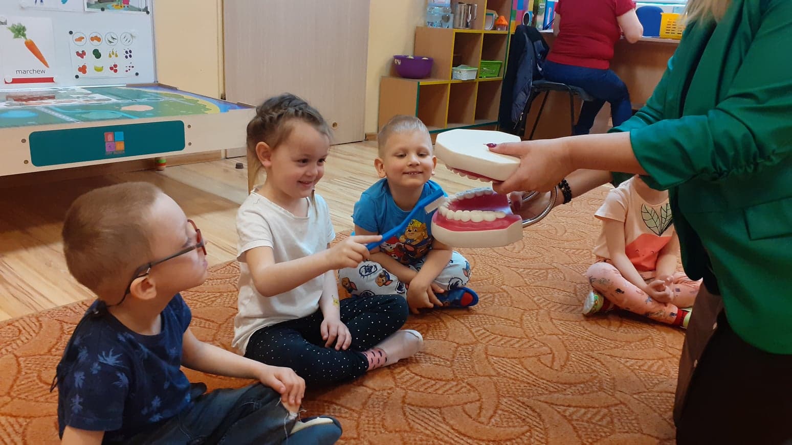 Jak co roku nasze przedszkole wzięło udział w realizacji Programu Zdrowia Jamy Ustnej i Zapobiegania Próchnicy pod nazwą „Zdrowe zęby mamy- marchewkę zajadamy”. Zajęcia organizowane były w 5 grupach zgodnie z czterema blokami tematycznymi.