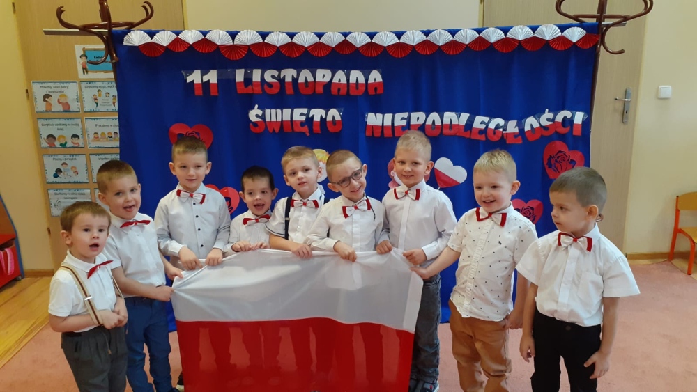 Uczciliśmy w naszym przedszkolu tradycyjnie. Było wspólne odśpiewanie hymnu państwowego oraz prezentacje artystyczne przygotowane przez wszystkie grupy specjalnie na tę okoliczność. Wcześniej dzieci wykonywały prace plastyczne, które ozdobiły kąciki wystaw na biało i czerwono.