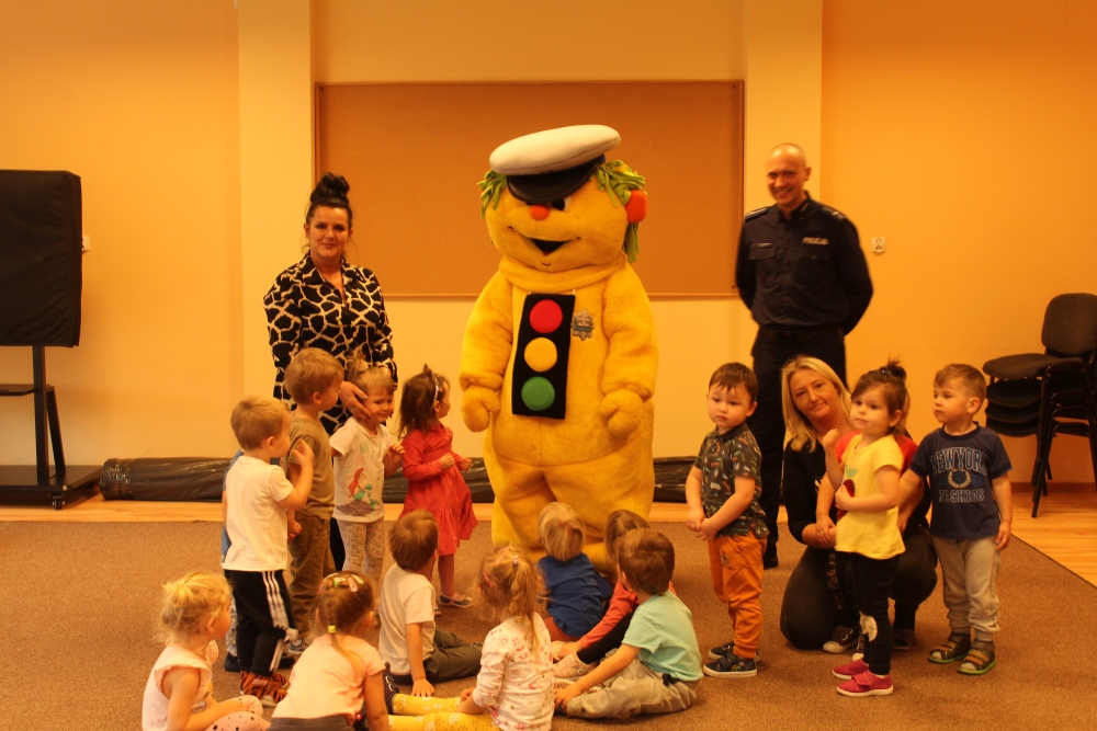 Dnia 4.11.2022 r. nasze przedszkole odwiedził policjant z Komendy Powiatowej Policji w Choszcznie wraz ze Stopkiem. Pan Policjant przeprowadził prelekcję na temat bezpieczeństwa, której celem było kształtowanie prawidłowych zachowań oraz postaw wśród przedszkolaków. Dzieci zapoznały się z zasadami bezpiecznego poruszania się podczas przechodzenia przez jezdnię oraz zapamiętały ważne numery alarmowe.