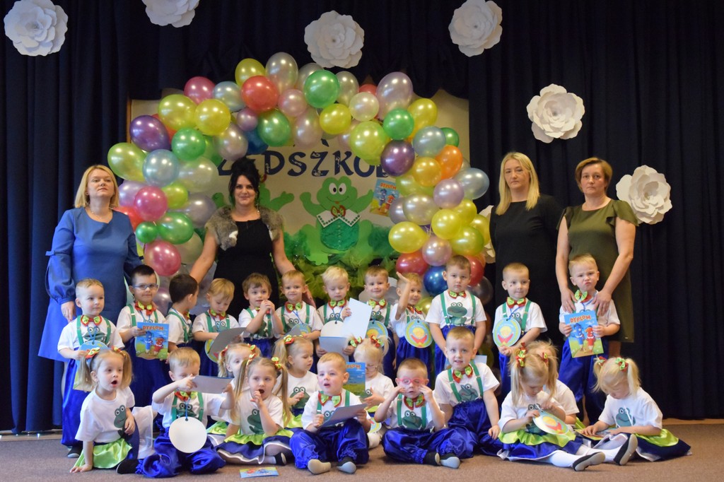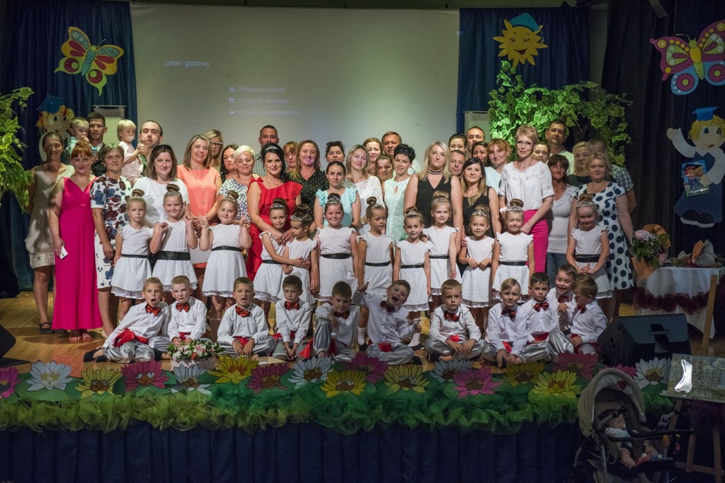W dniu 20 czerwca 2018 roku dzieci z grupy "Wiewiórki" żegnały czwórkę swoich kolegów kończących edukację przedszkolną. Dzieci na tle pięknej dekoracji zaprezentowały wzruszający spektakl pt: ,,Królewna Inka i Kwiatoludki."