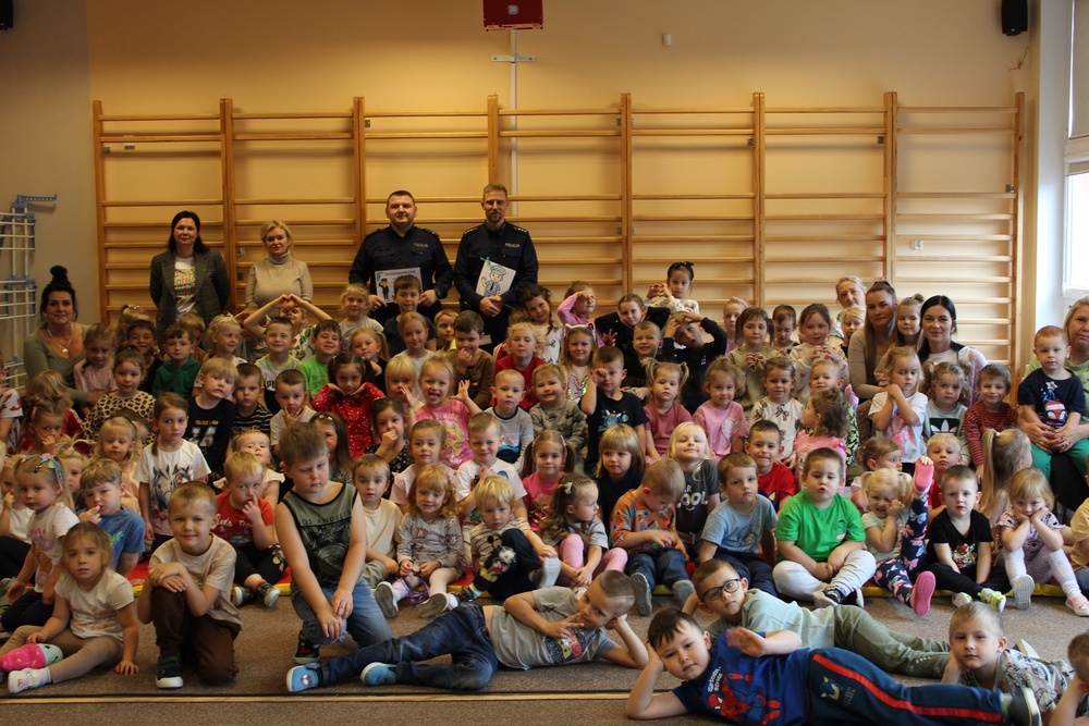 Dnia 27.10.2025r. w naszym przedszkolu odbyło się spotkanie z funkcjonariuszami Policji z Posterunku Policji w Pełczycach. Celem wizyty było przypomnienie dzieciom zasad bezpiecznego poruszania się po drogach oraz właściwego zachowania w sytuacjach zagrożenia.